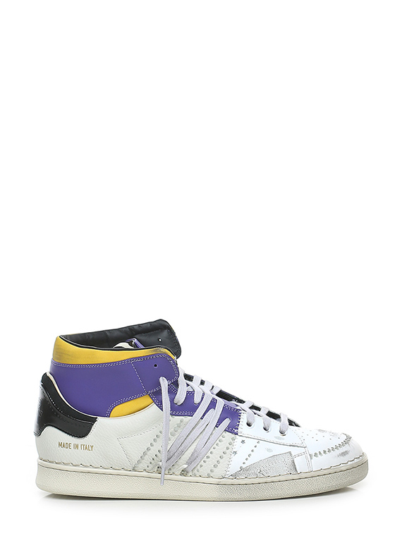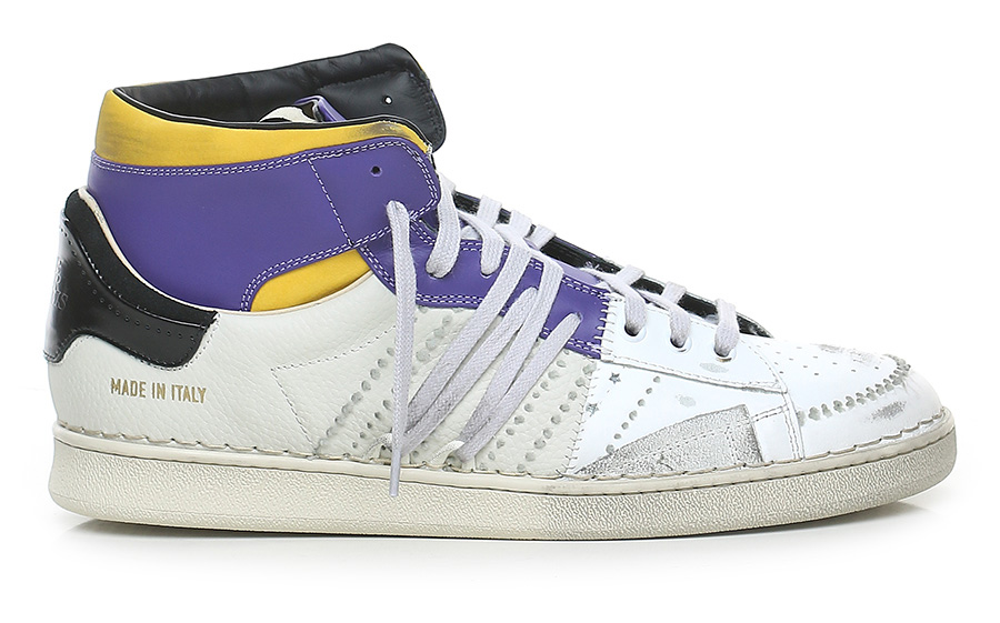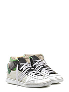 Vintage effect leather sneaker with leather inserts. Rubber sole. 25mm heel height, 20mm platform with 5mm ledge.