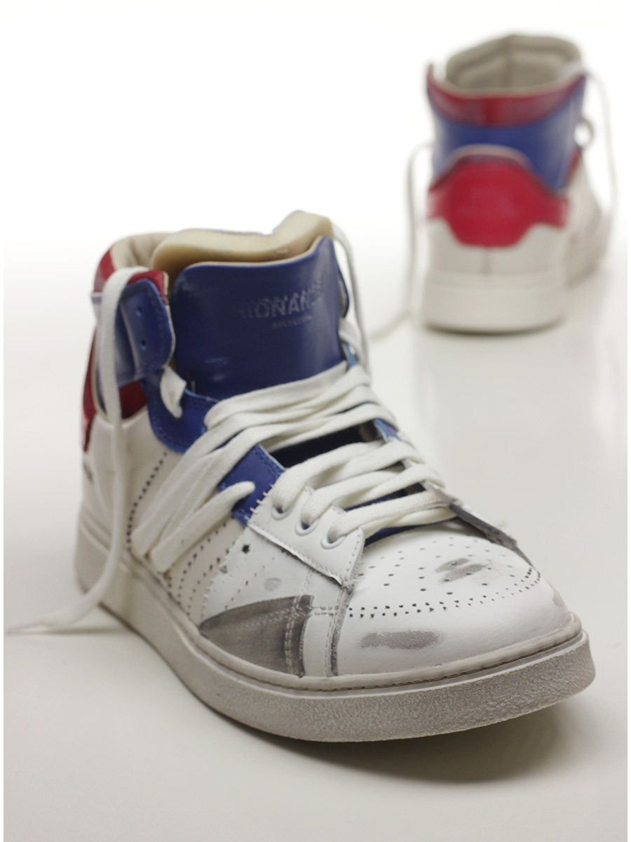 Sneaker in vintage effect leather and vintage effect suede with rubber sole. 25mm heel height, 20mm platform with 5mm ledge.