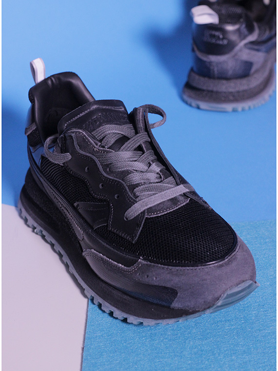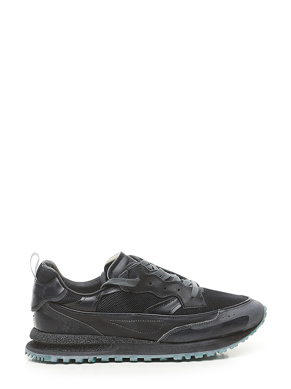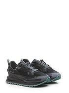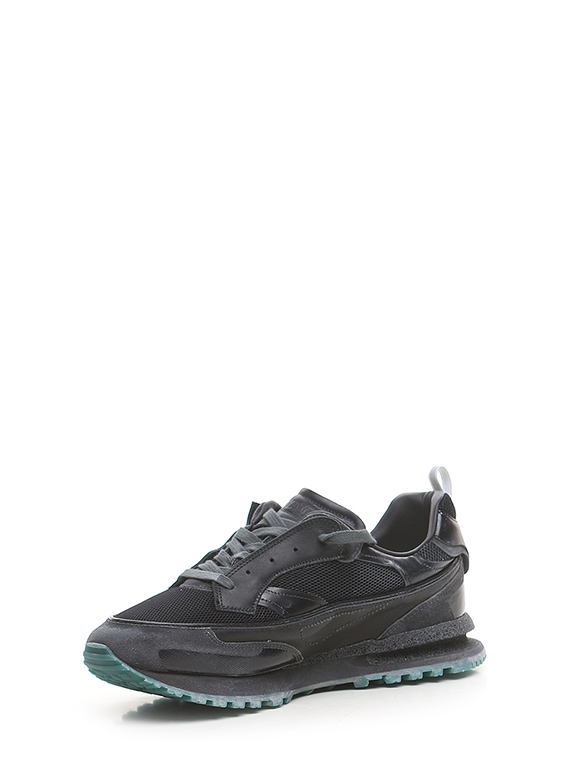 Sneaker in fabric, vintage-effect leather and vintage-effect suede. Vintage effect rubber sole. Heel height 30mm, platform 20mm with 10mm ledge.