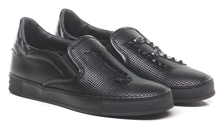 Sneaker in pelle con inserti elasticizzati su ambo i lati e borchie frontali Suola in gomma, tacco 30.