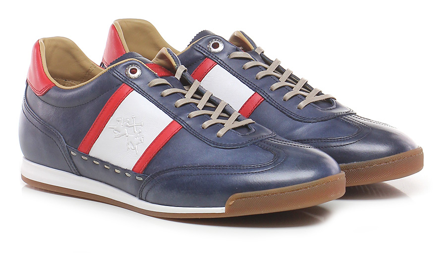 Sneaker in pelle effetto delavè, suola in gomma. Tacco 20.