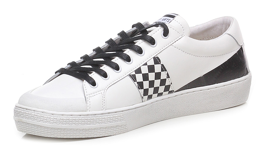 Vintage effect leather sneaker, rubber sole. 30 heel, 30 platform.