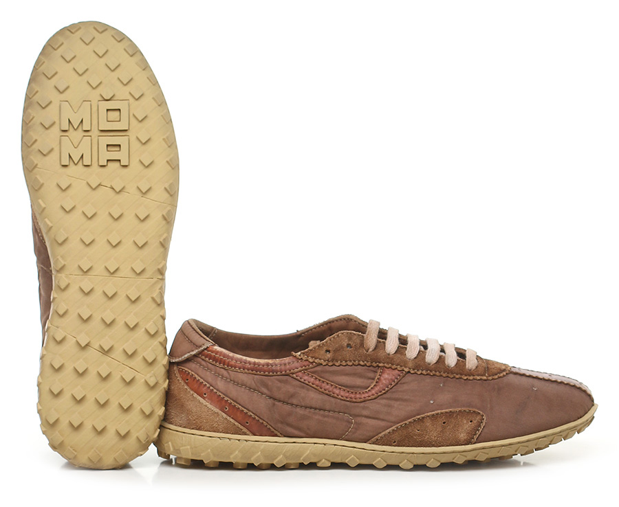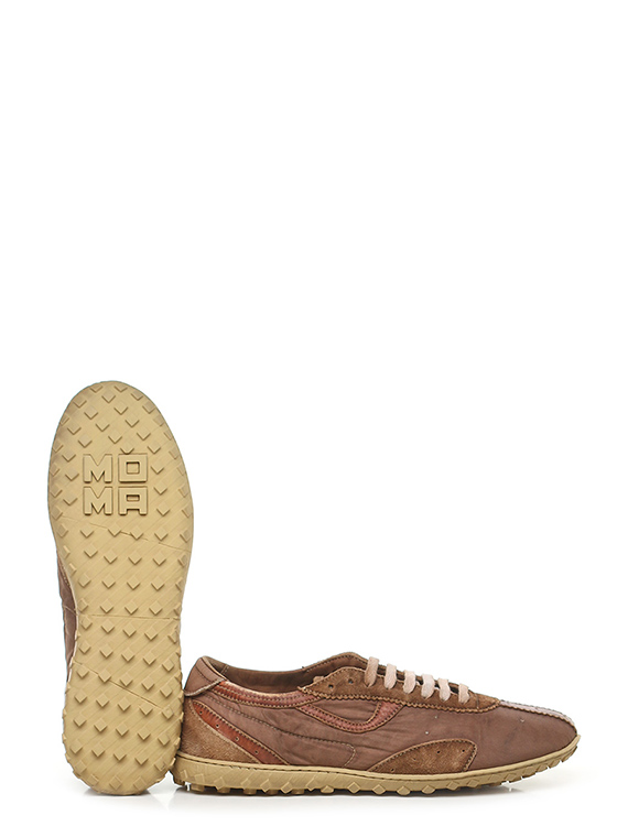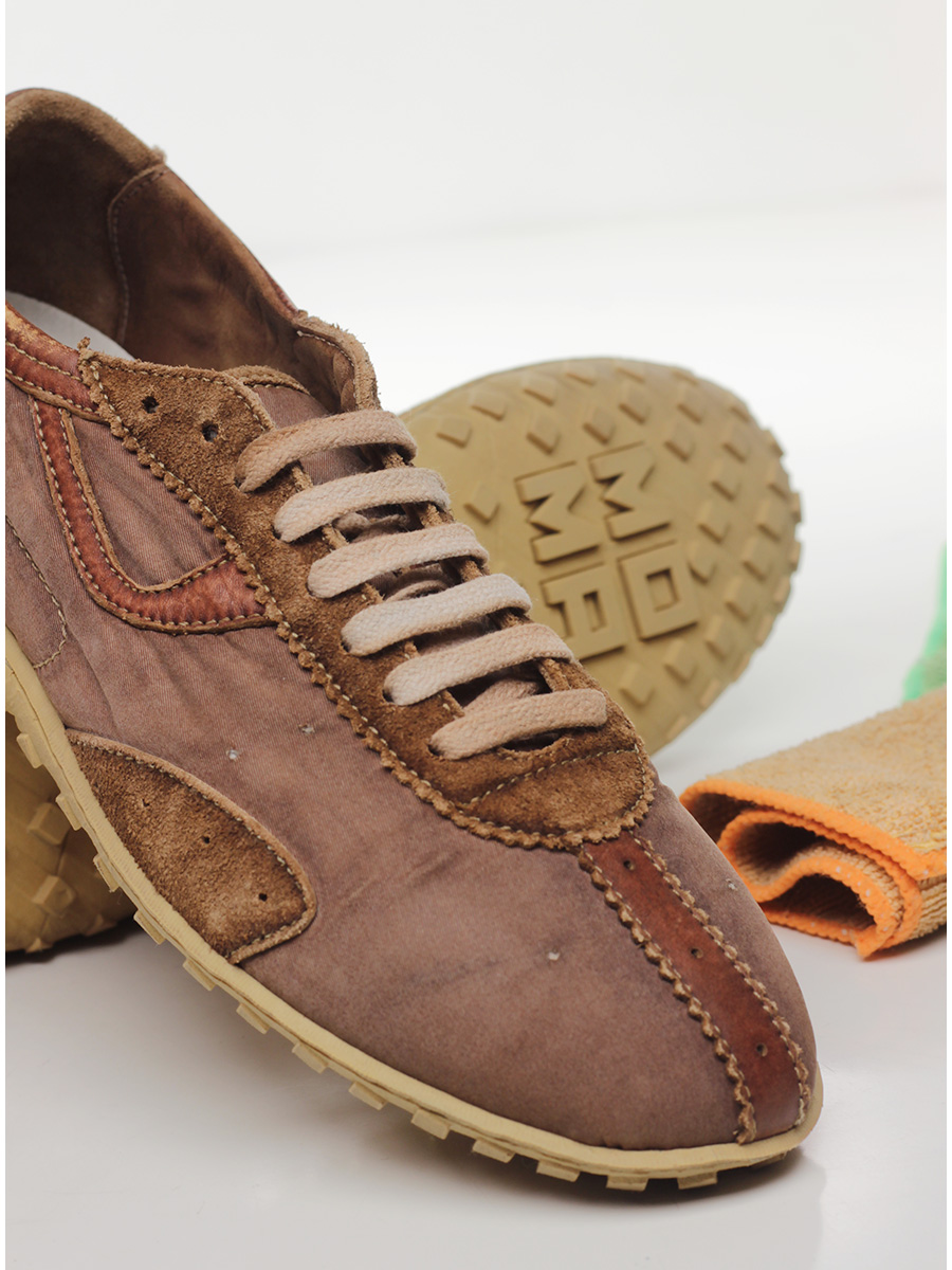 Sneaker in fabric and suede with a vintage effect. Rubber sole. Heel height 20mm.