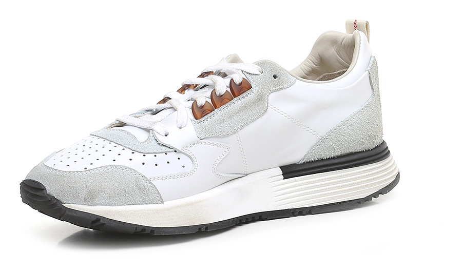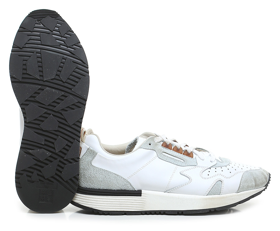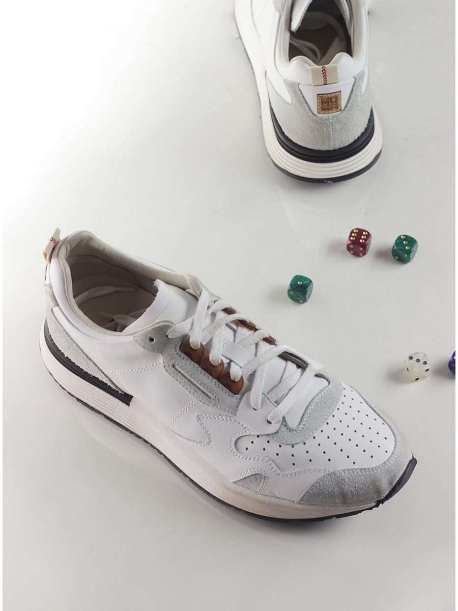 Vintage-effect leather and suede sneaker with vintage-effect rubber sole. 35mm heel height, 25mm platform with 10mm ledge.