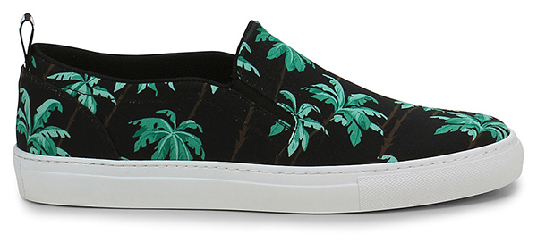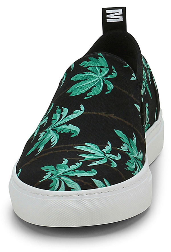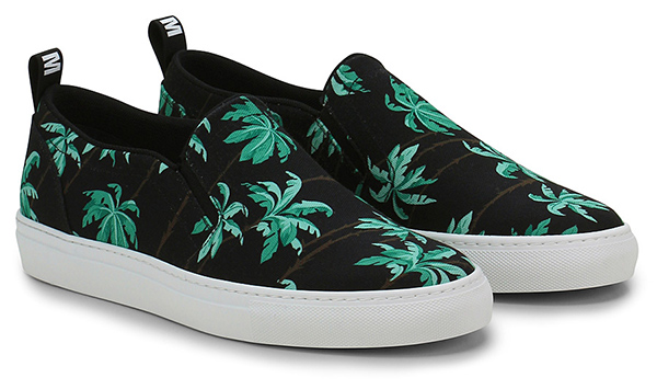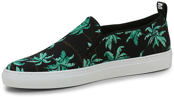 Sneaker in printed fabric and leather with elastic insert on the instep. Rubber sole, heel 30.