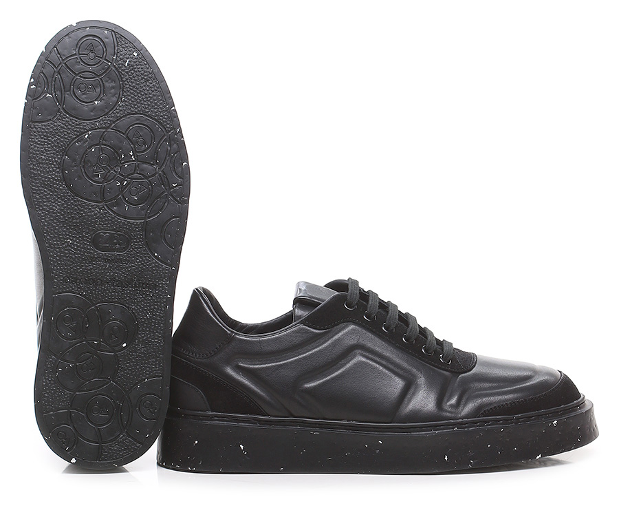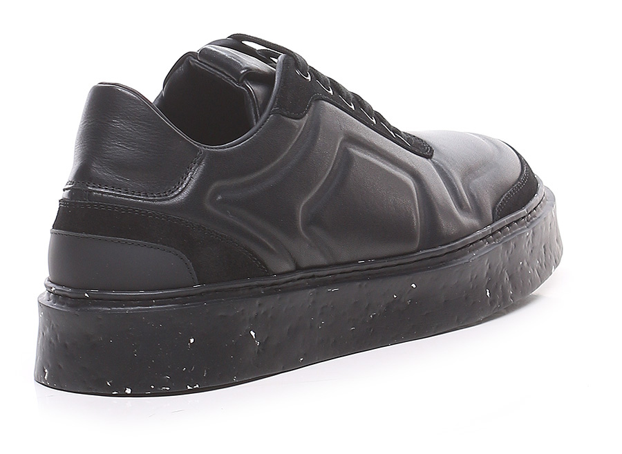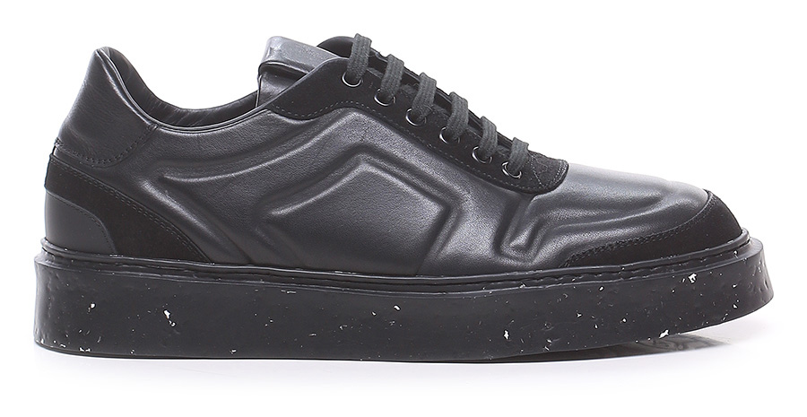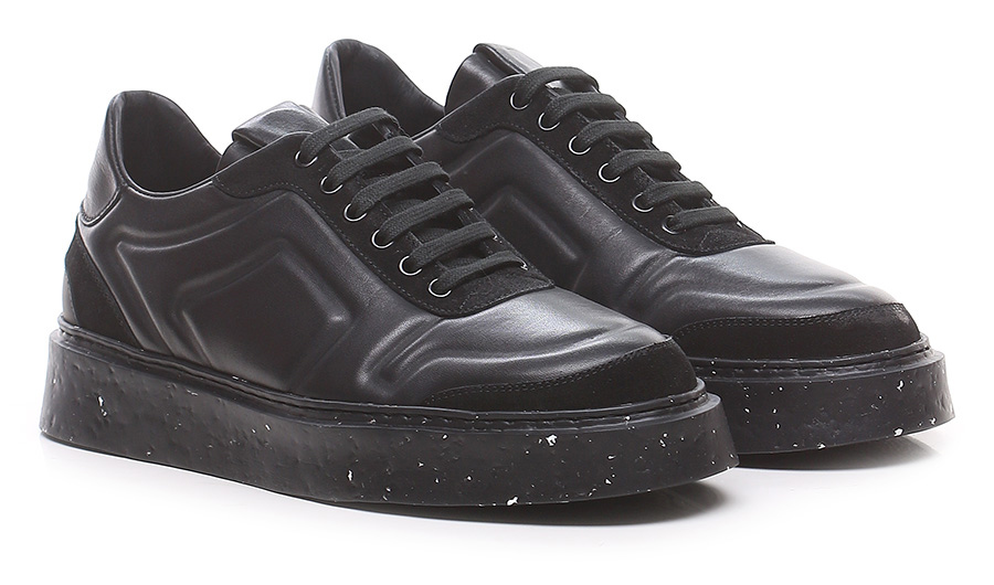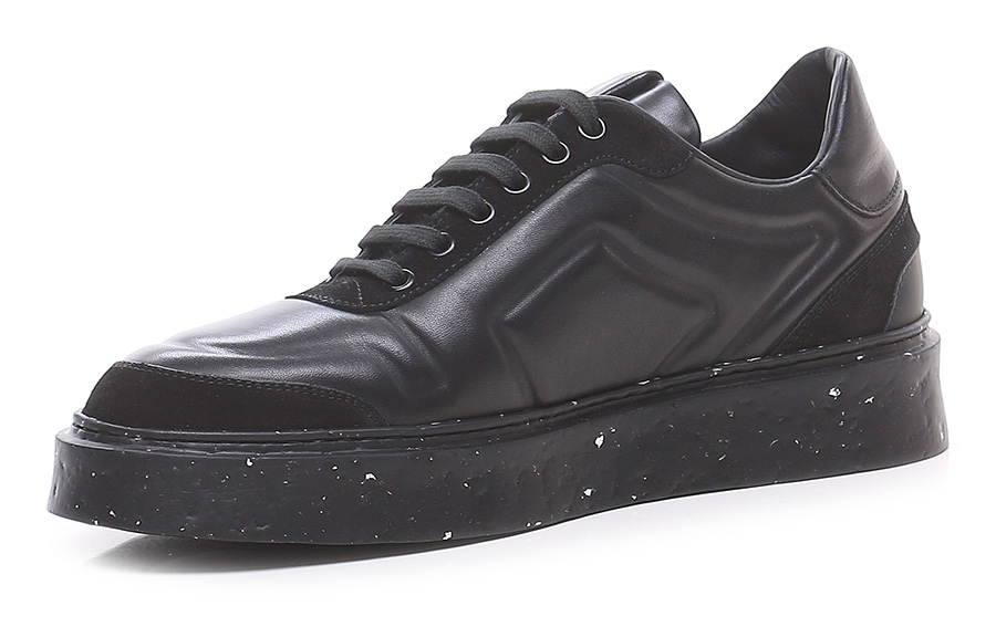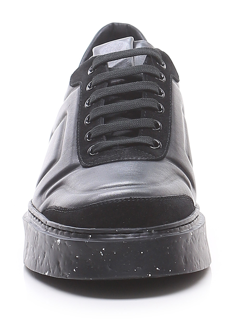 Leather sneaker with suede inserts. Extralight rubber sole. 40mm heel height, 30mm platform with 10mm ledge.
