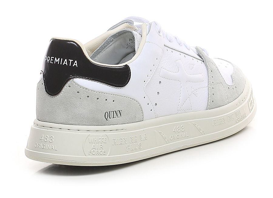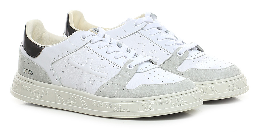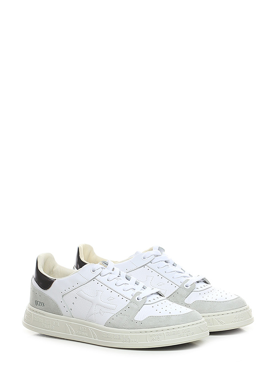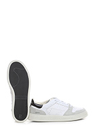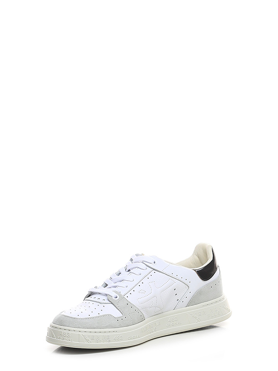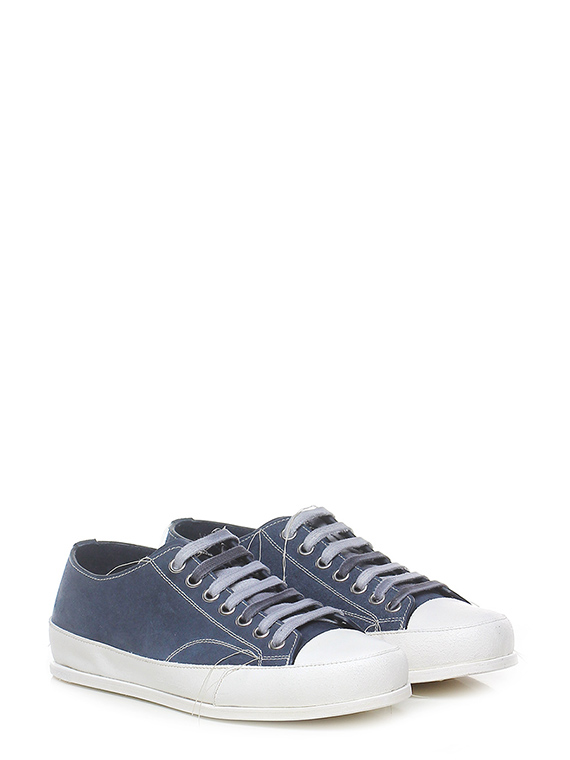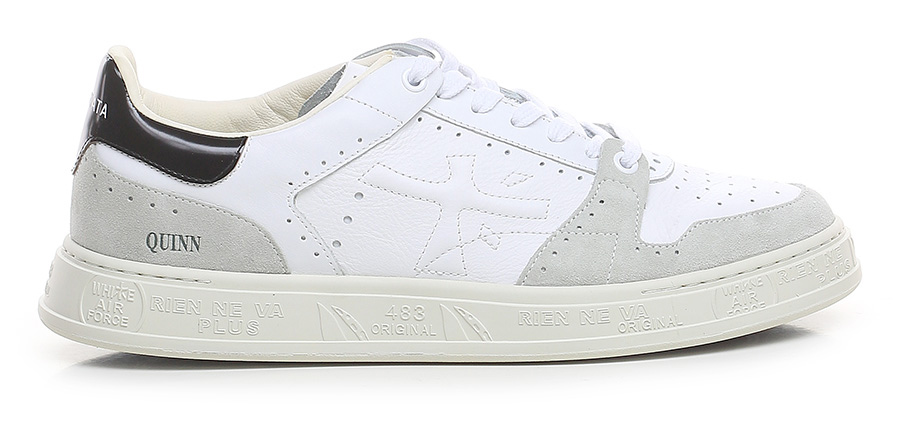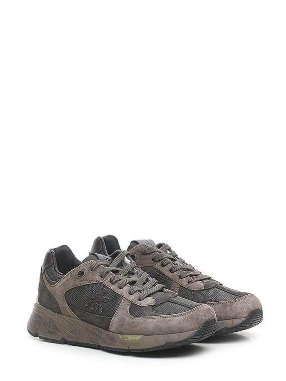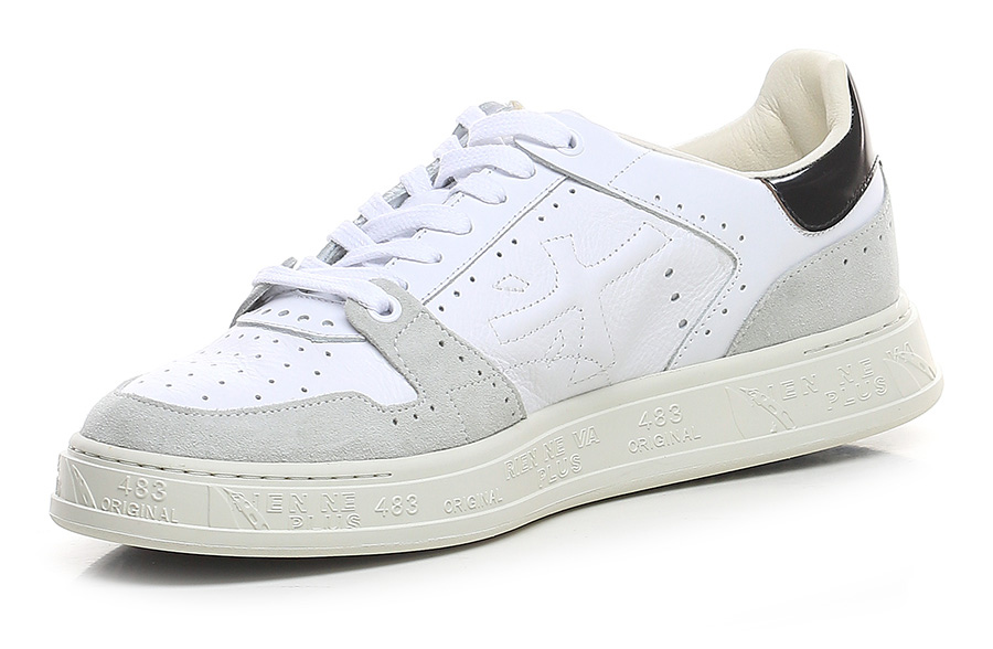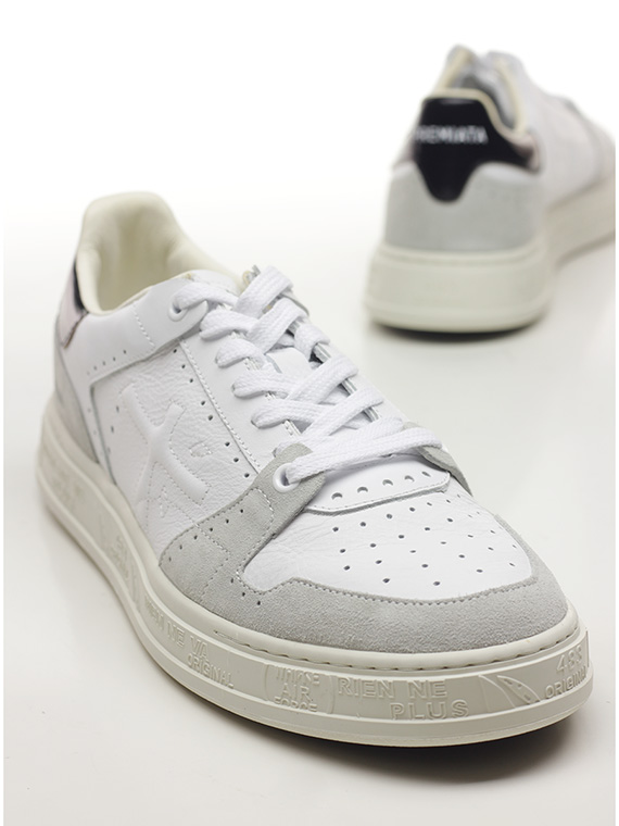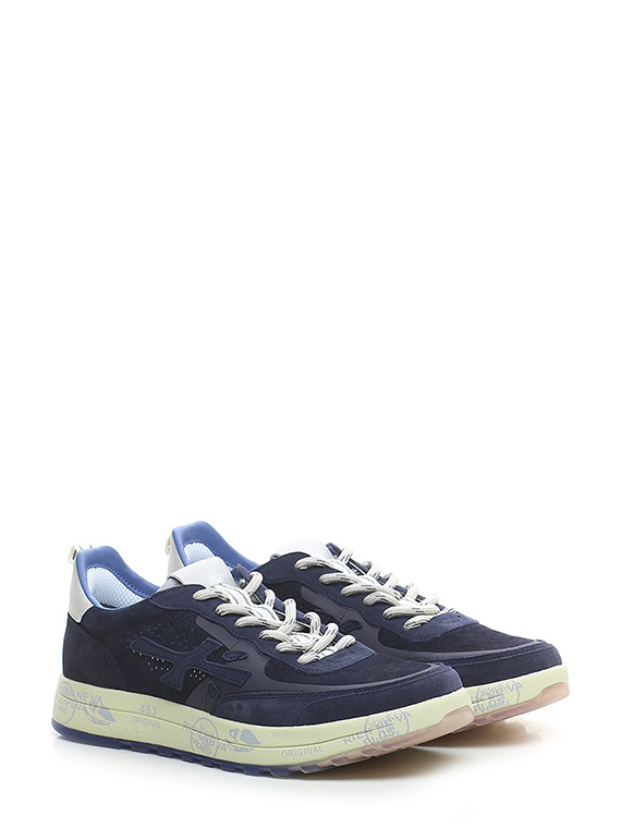 Leather sneaker with suede inserts. Rubber sole. 35mm heel height, 30mm platform with 5mm ledge.