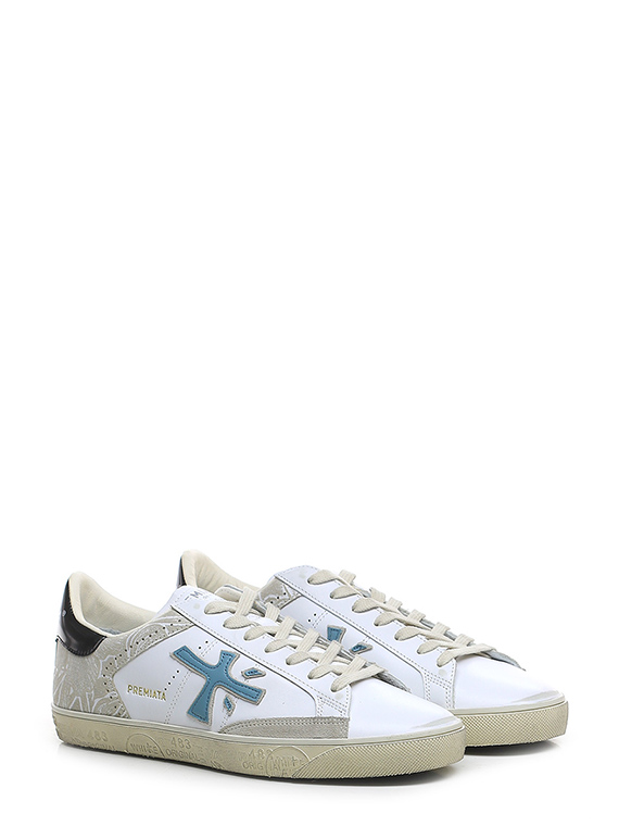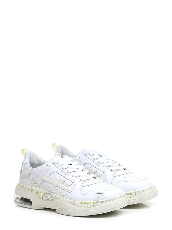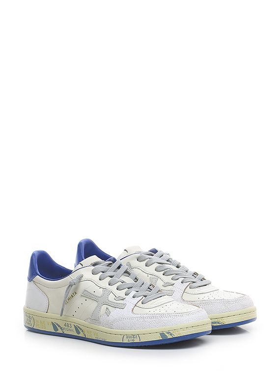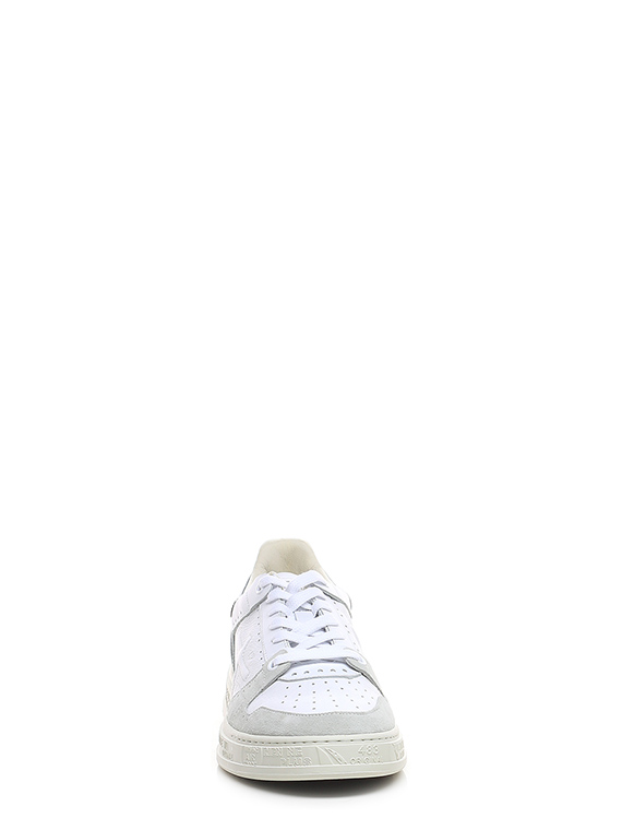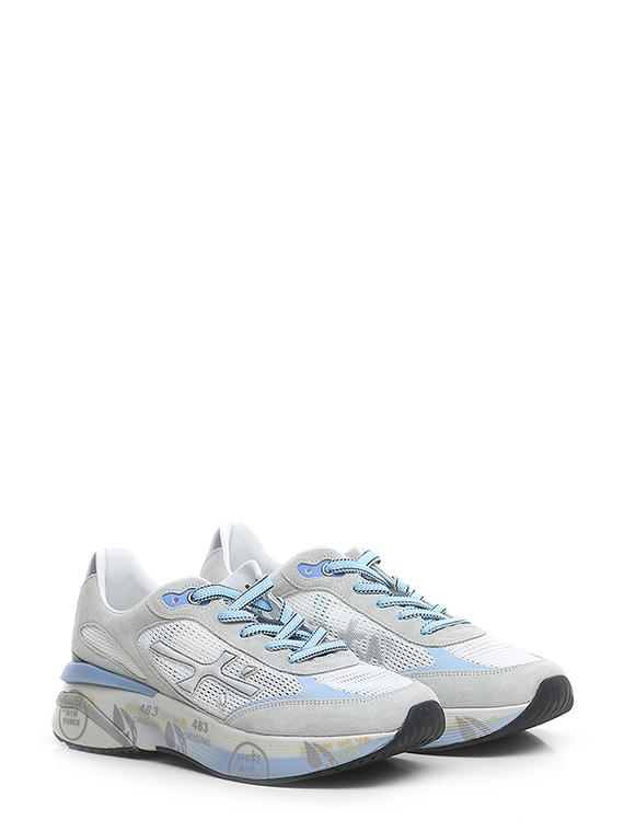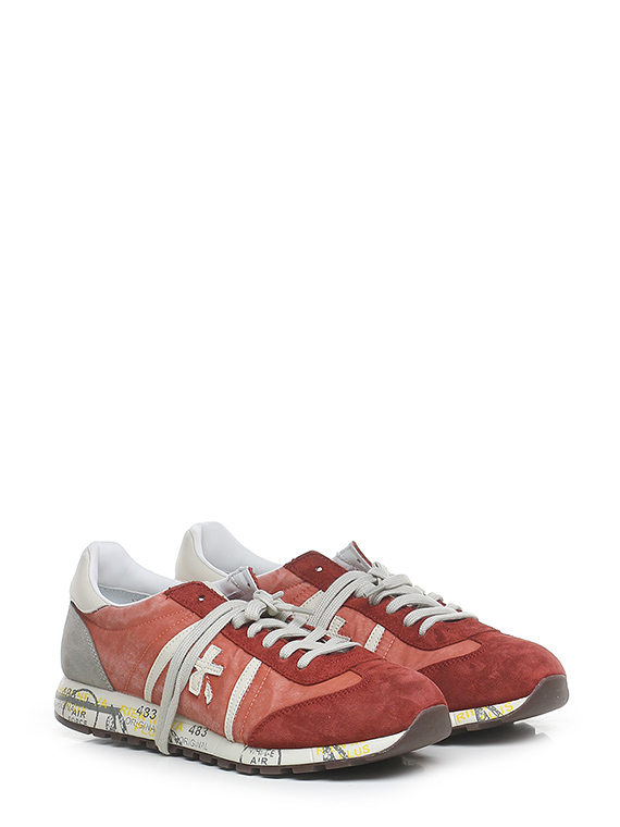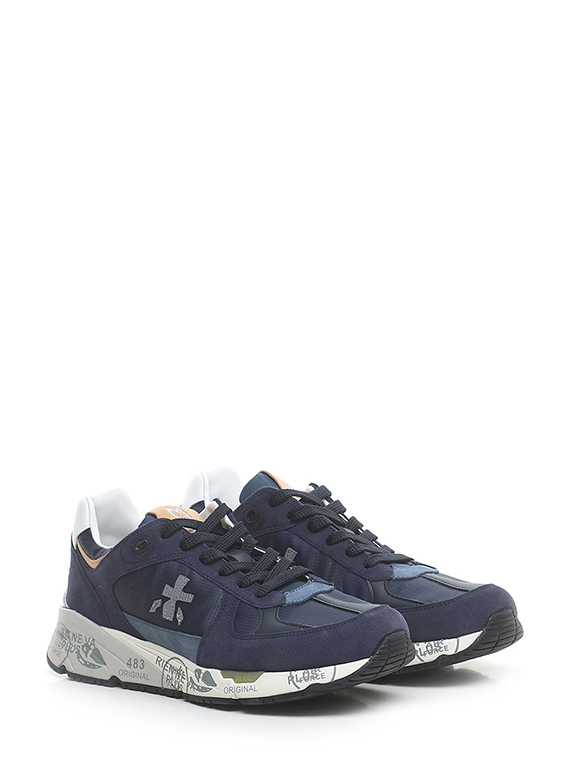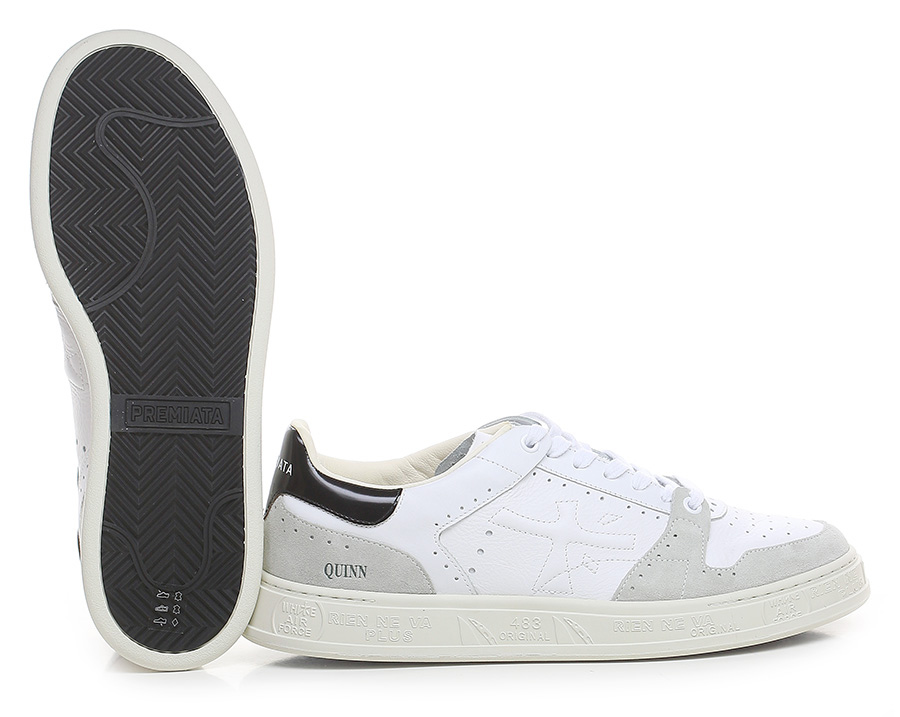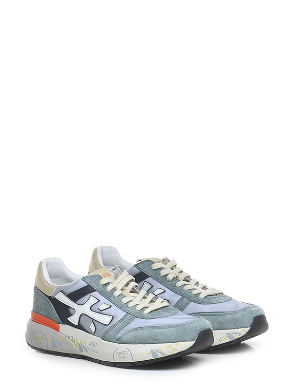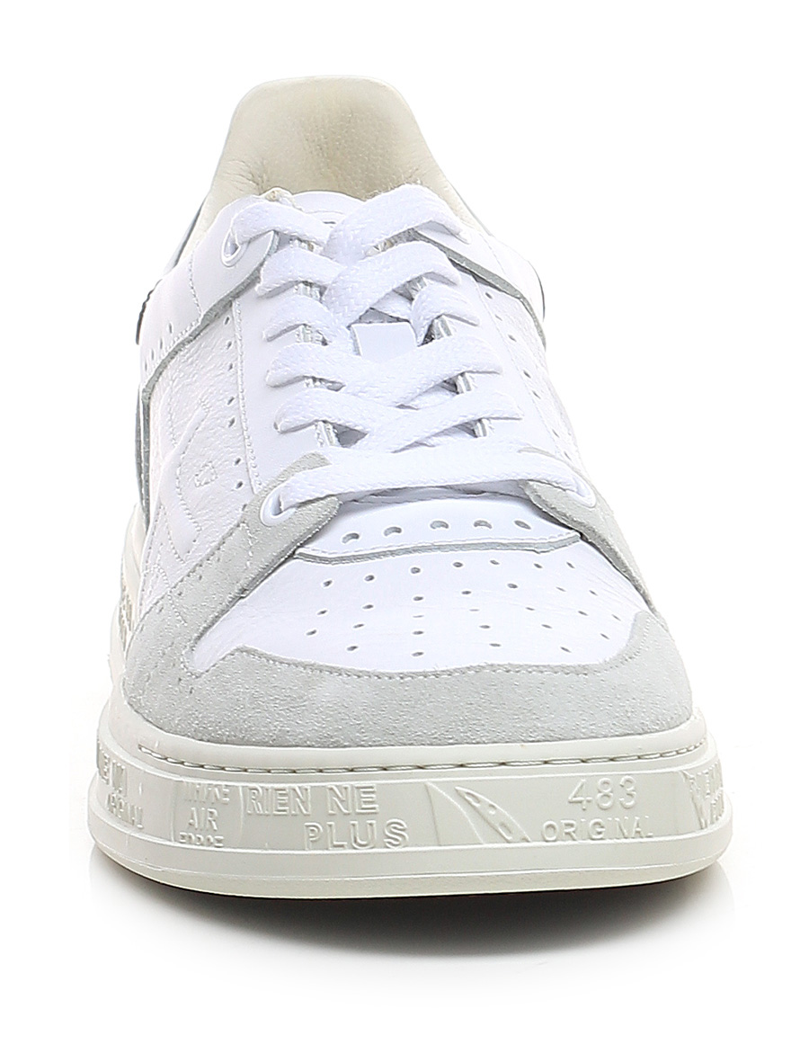 Leather sneaker with suede inserts. Rubber sole. 35mm heel height, 30mm platform with 5mm ledge.