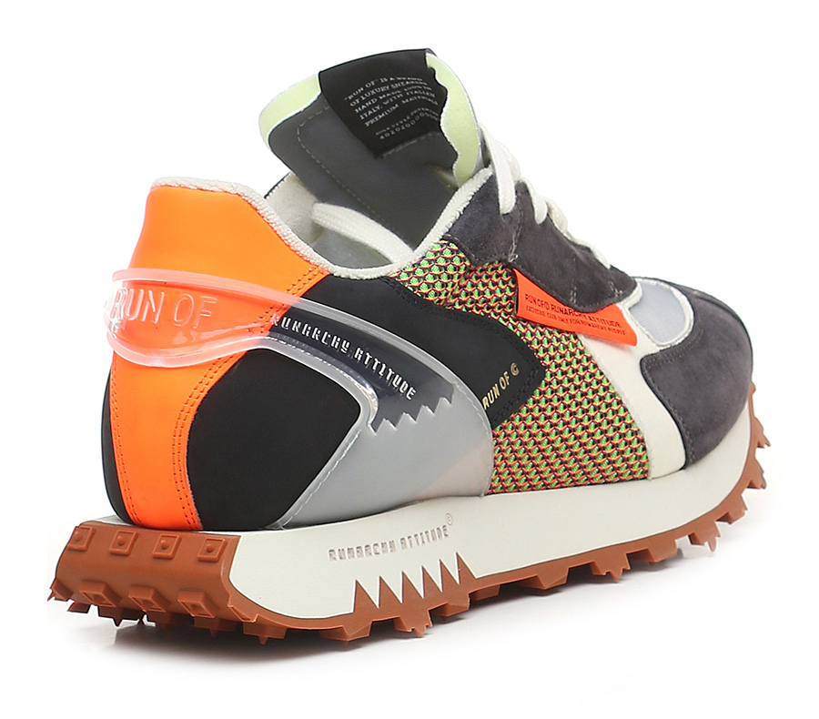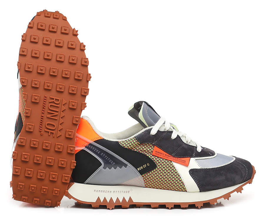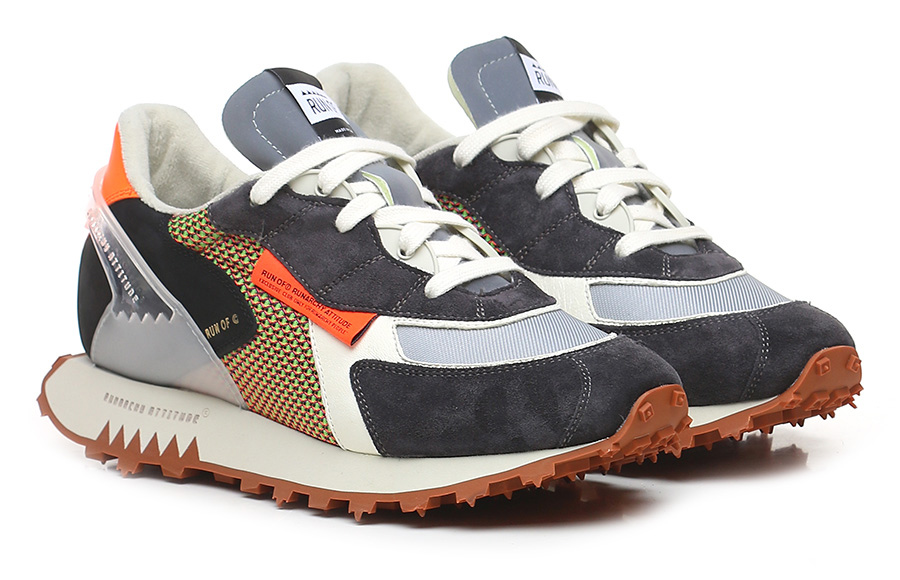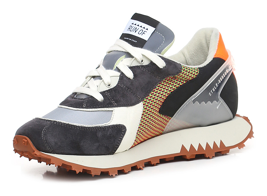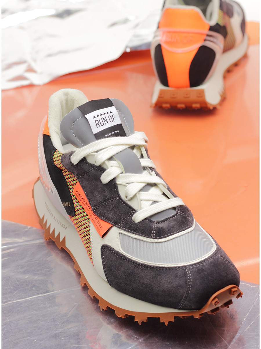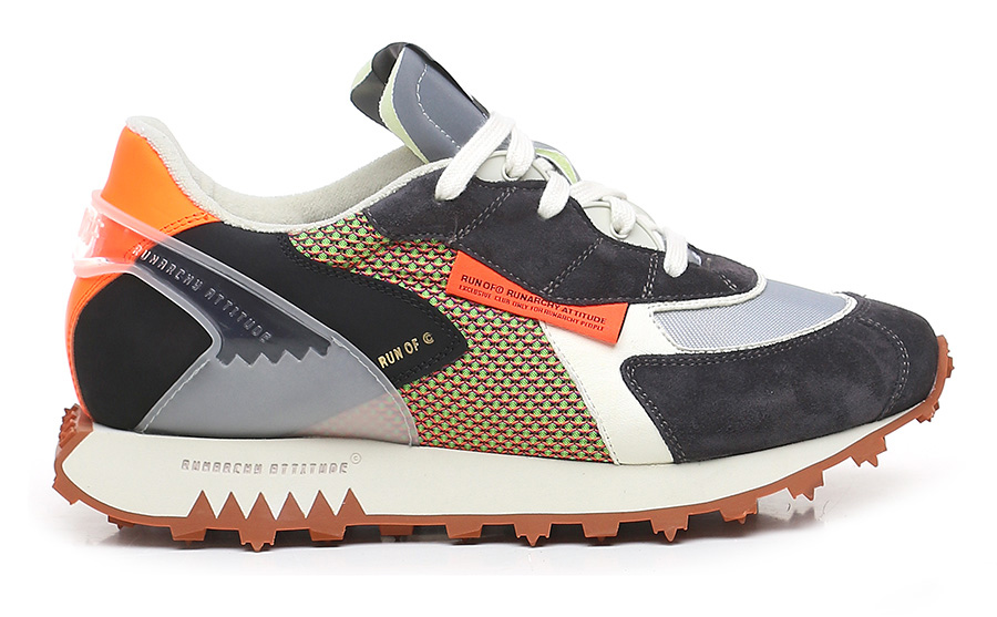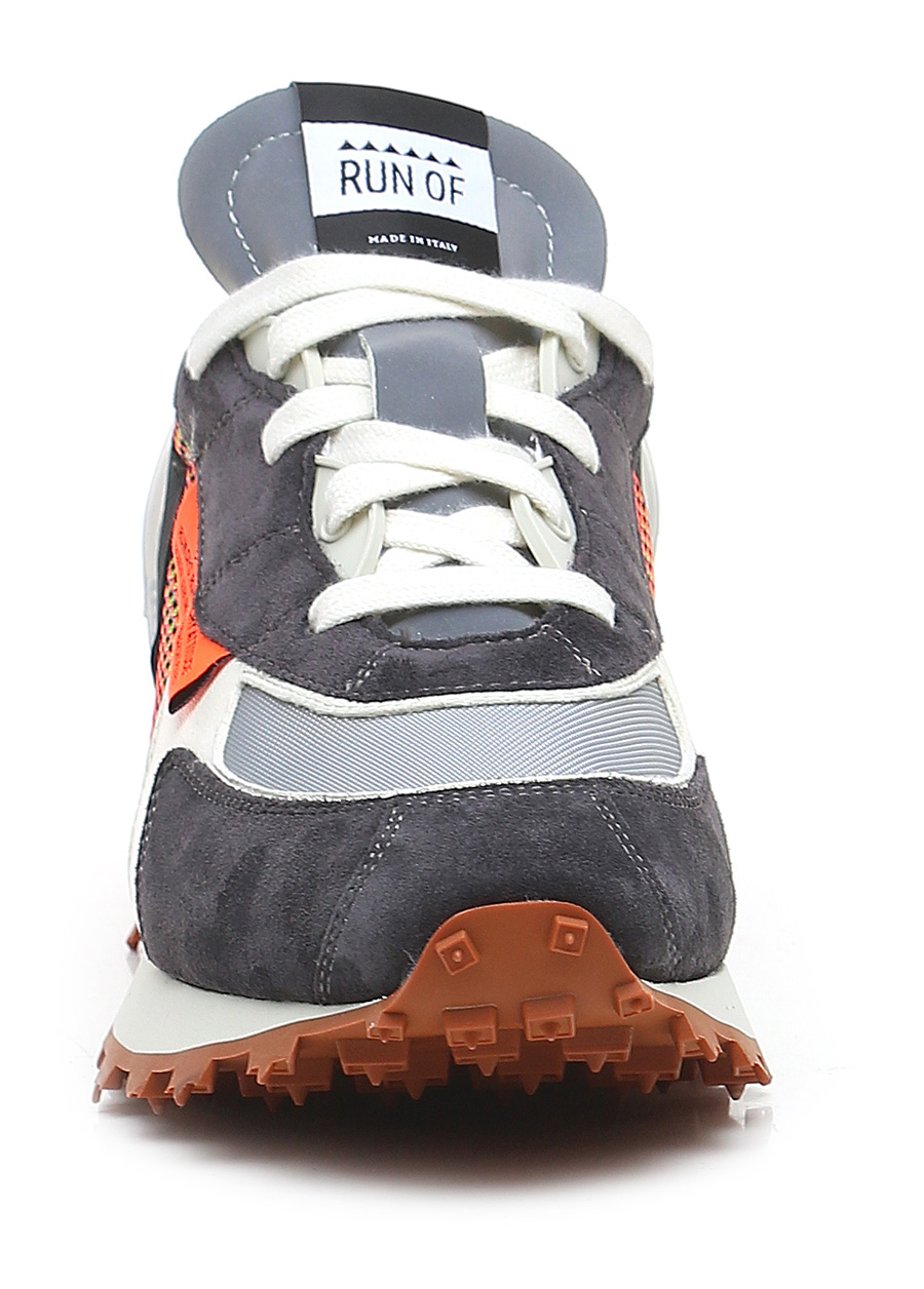 Sneaker in fabric, nubuck, vintage-effect leather and suede with PVC insert on the back. Rubber sole. 35mm heel height, 25mm platform with 10mm ledge.