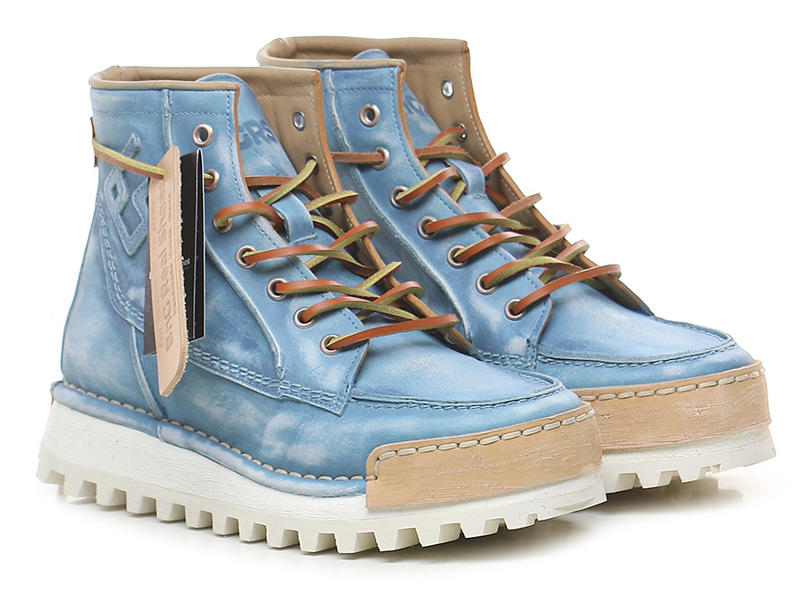 Sneaker in pelle effetto vintage con suola in gomma. Altezza tacco 40mm, platform 30mm con battuta 10mm.