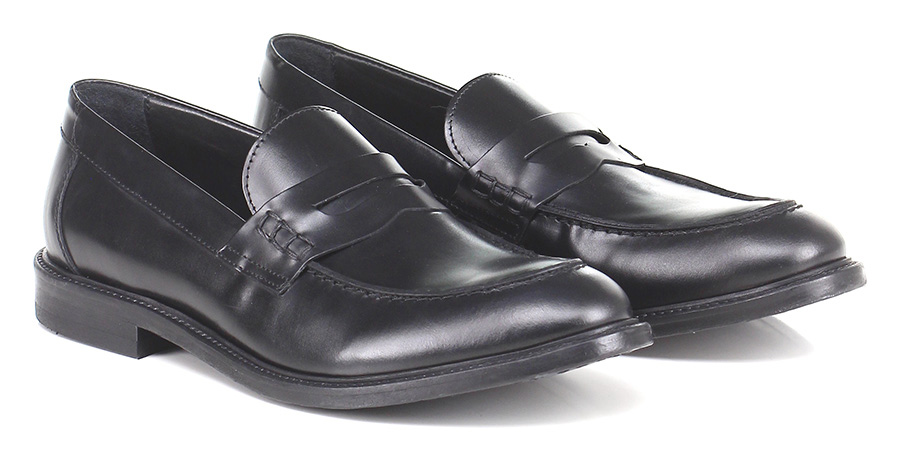 Mocassino in pelle con suola in cuoio, tacco 25, platform 15 con battuta 10.