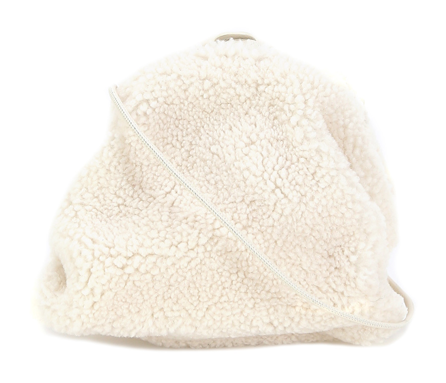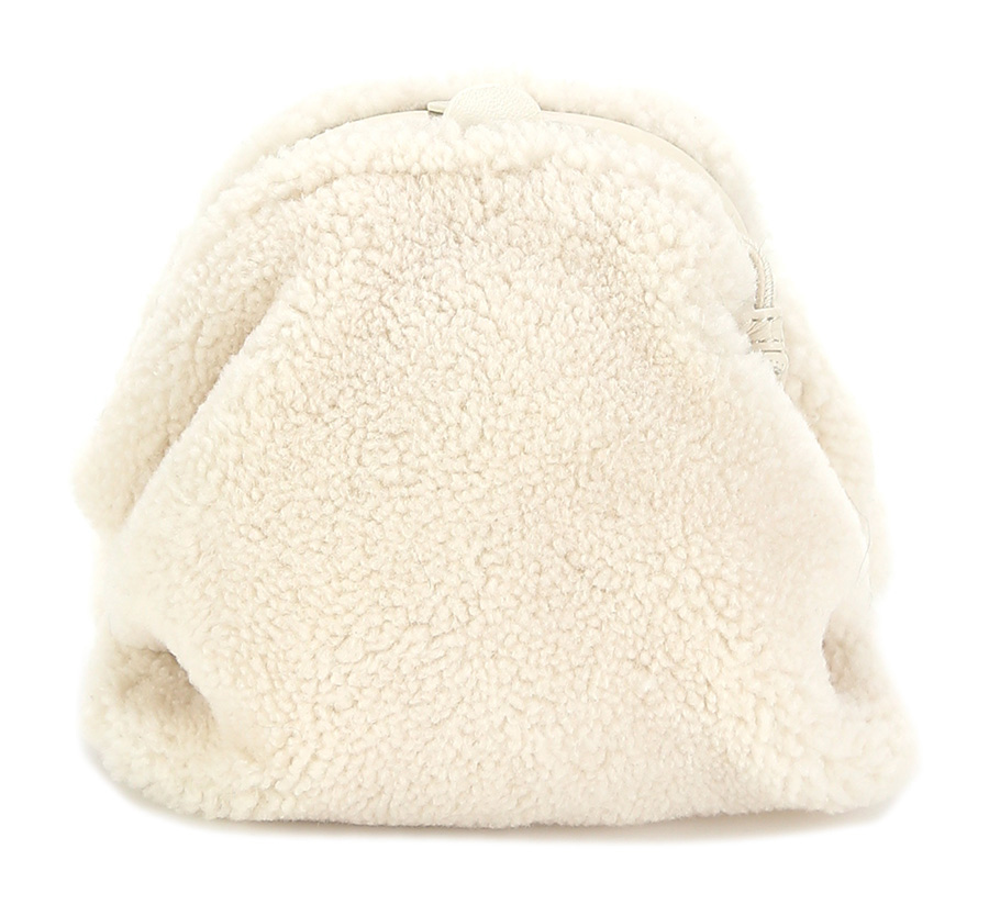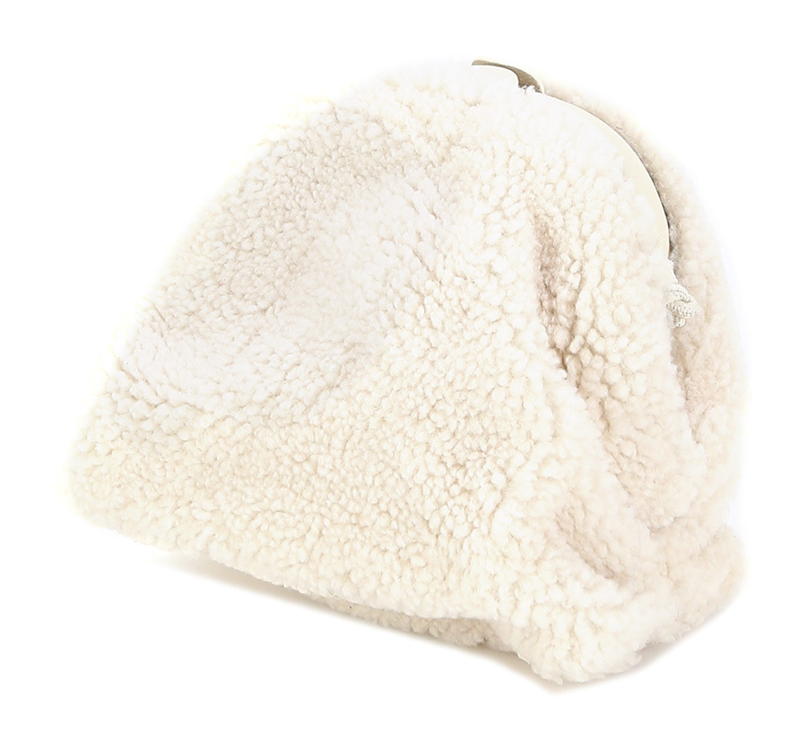 Fur bag with snap closure. Shoulder strap included. Measures 18 x 16cm. Gold details.