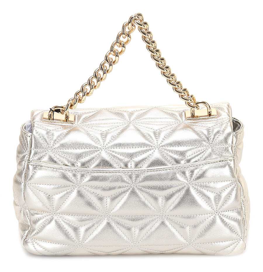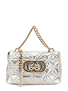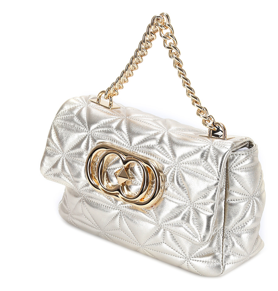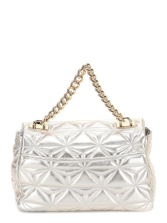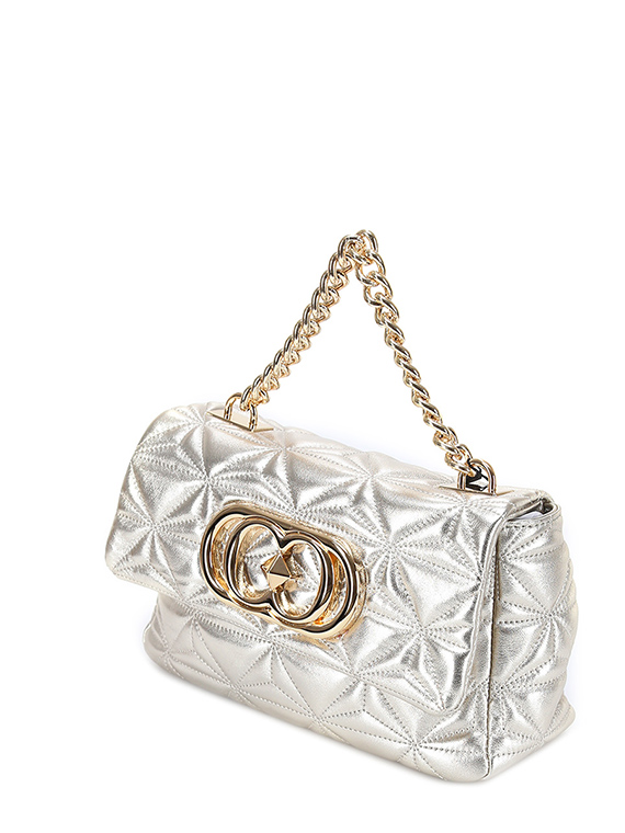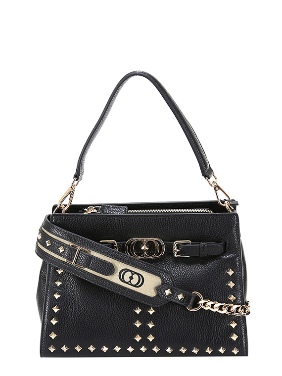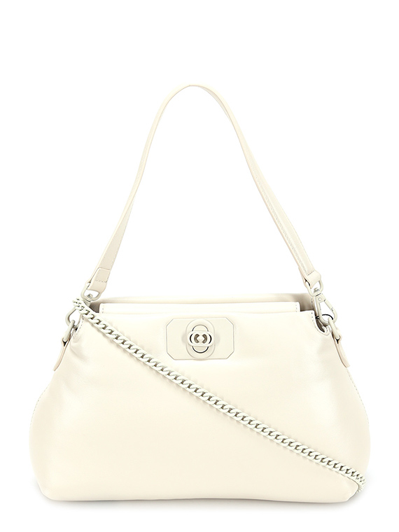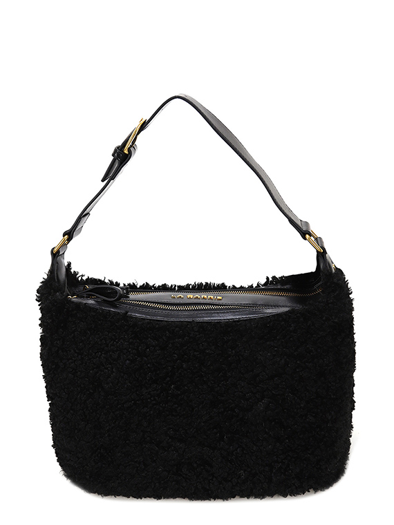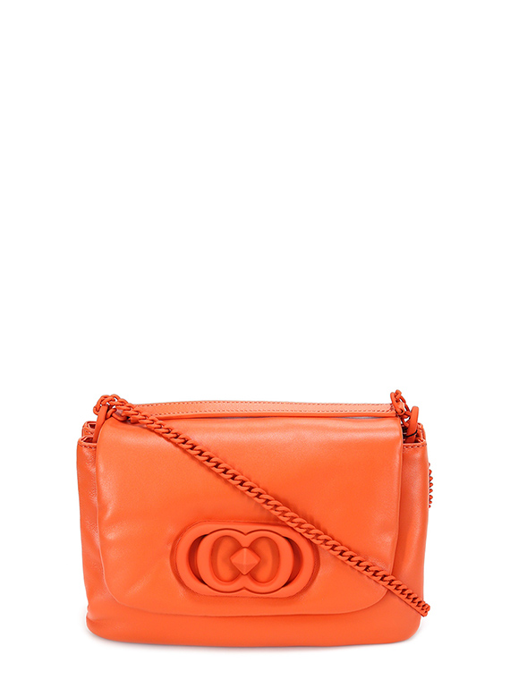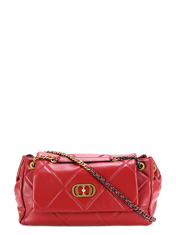 Bag in laminated leather with magnetic closure button. Shoulder strap included. Measures 30 x 16cm.