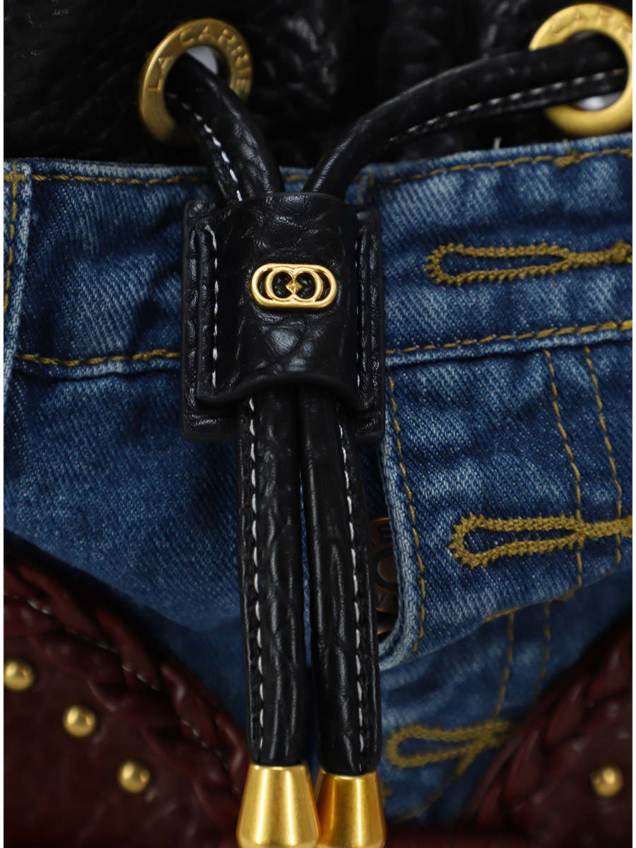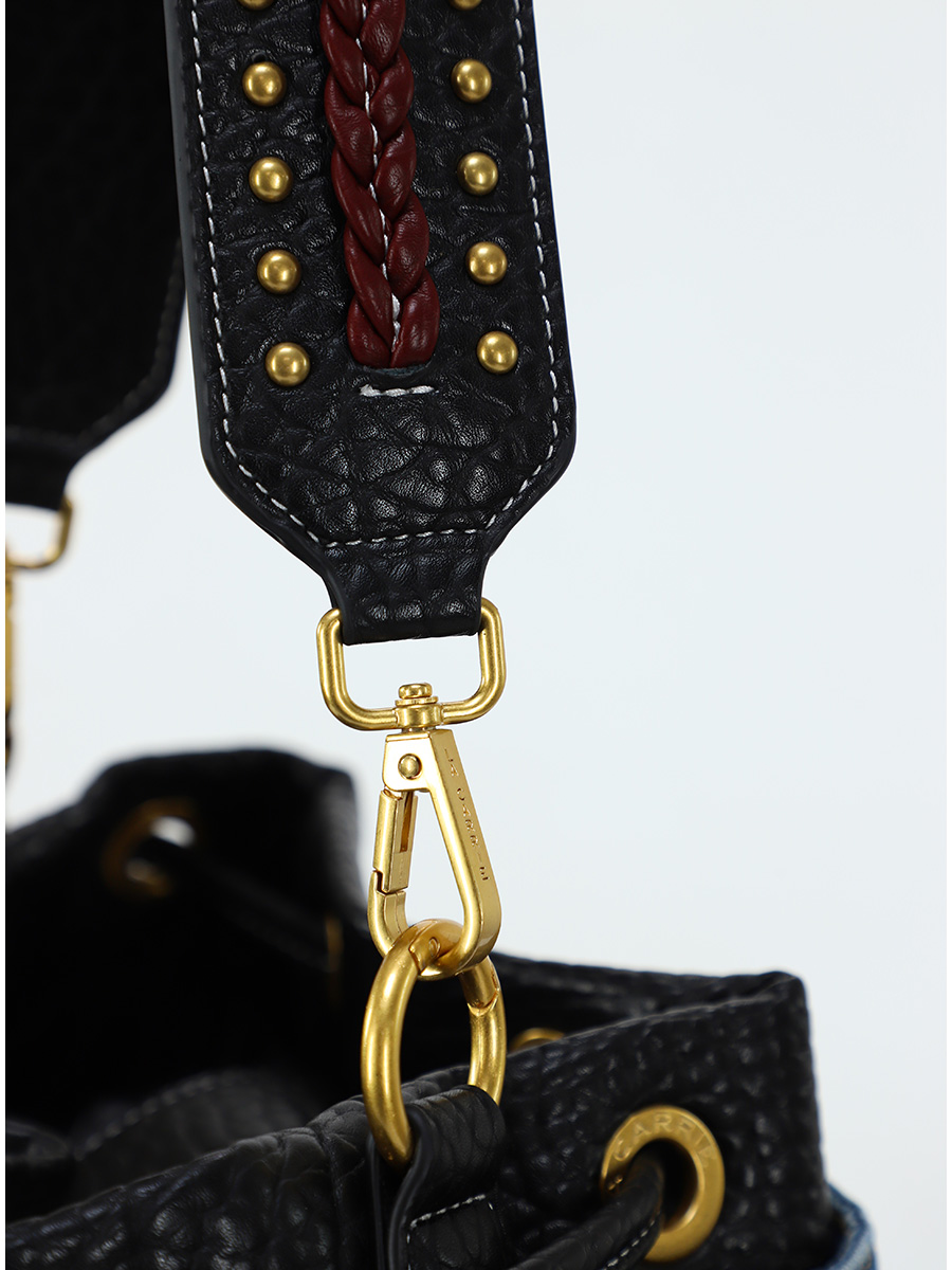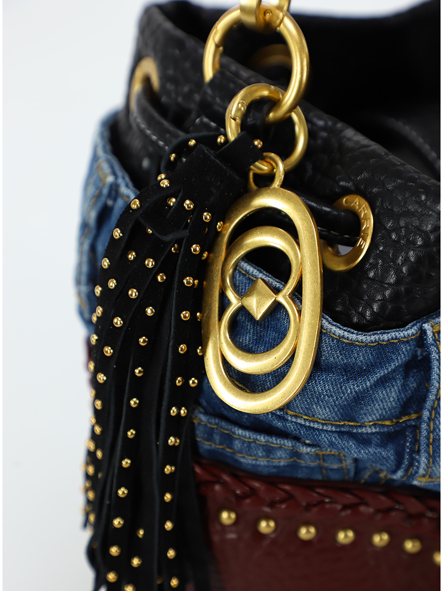 : Logo, Studs, Bottom with studs, Gold details, Fringe, Tassels, Pattern