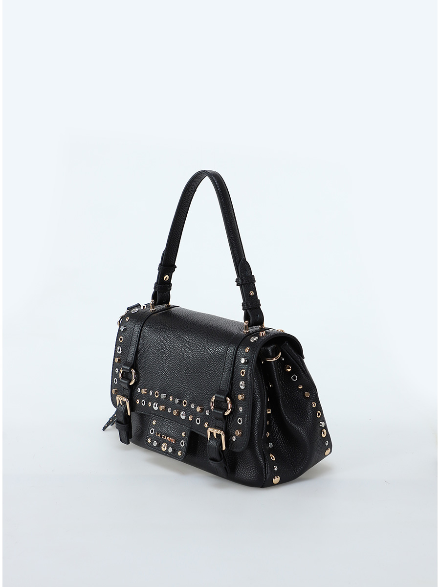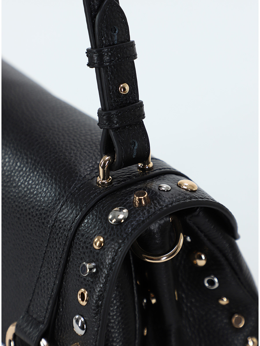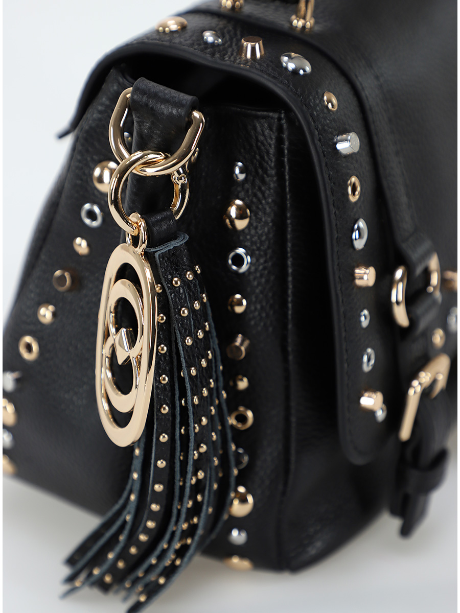 : Logo, Rhinestones, Studs, Bottom with studs, Gold details, Tassels