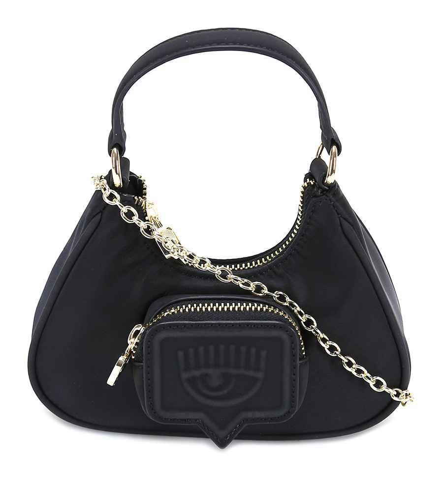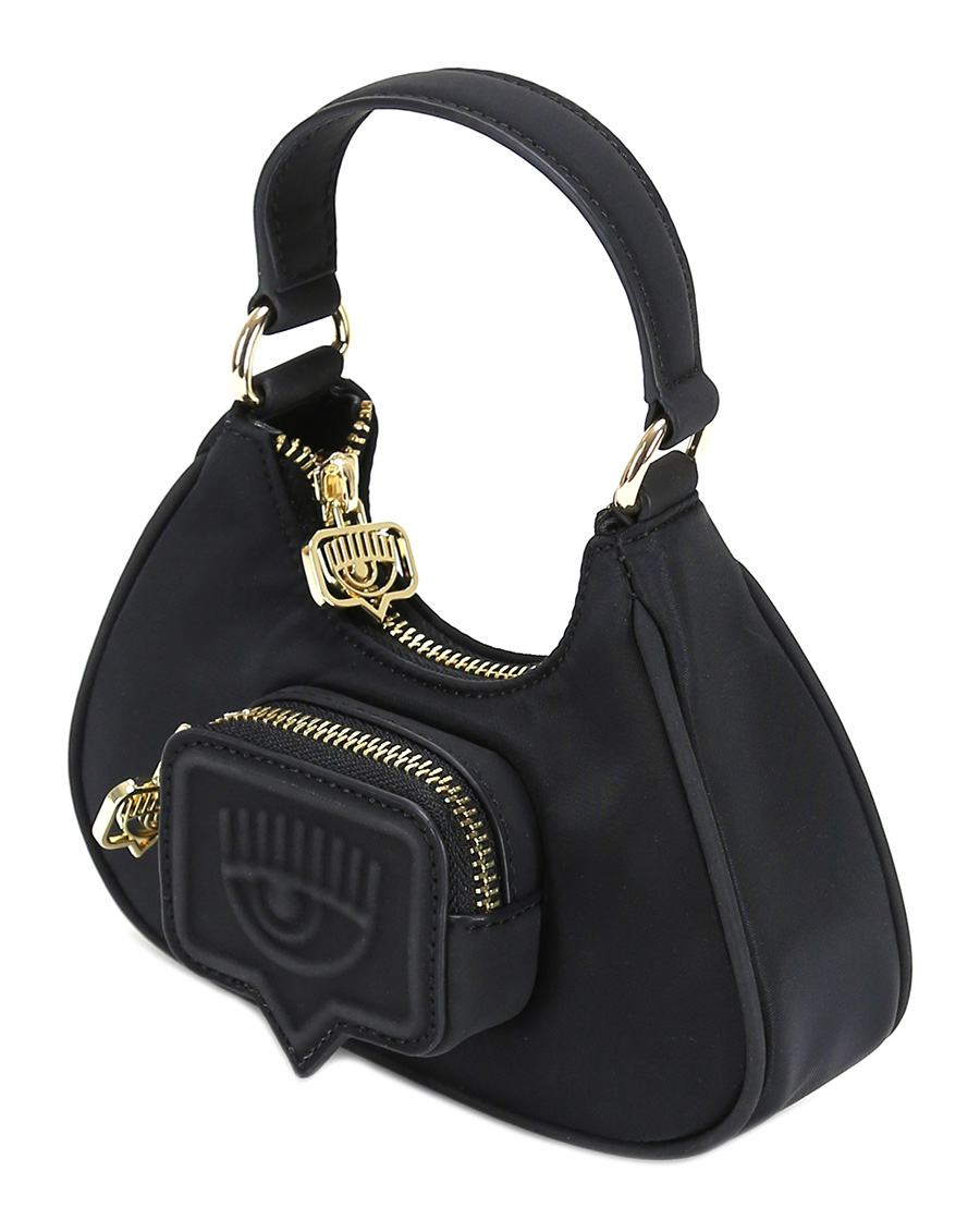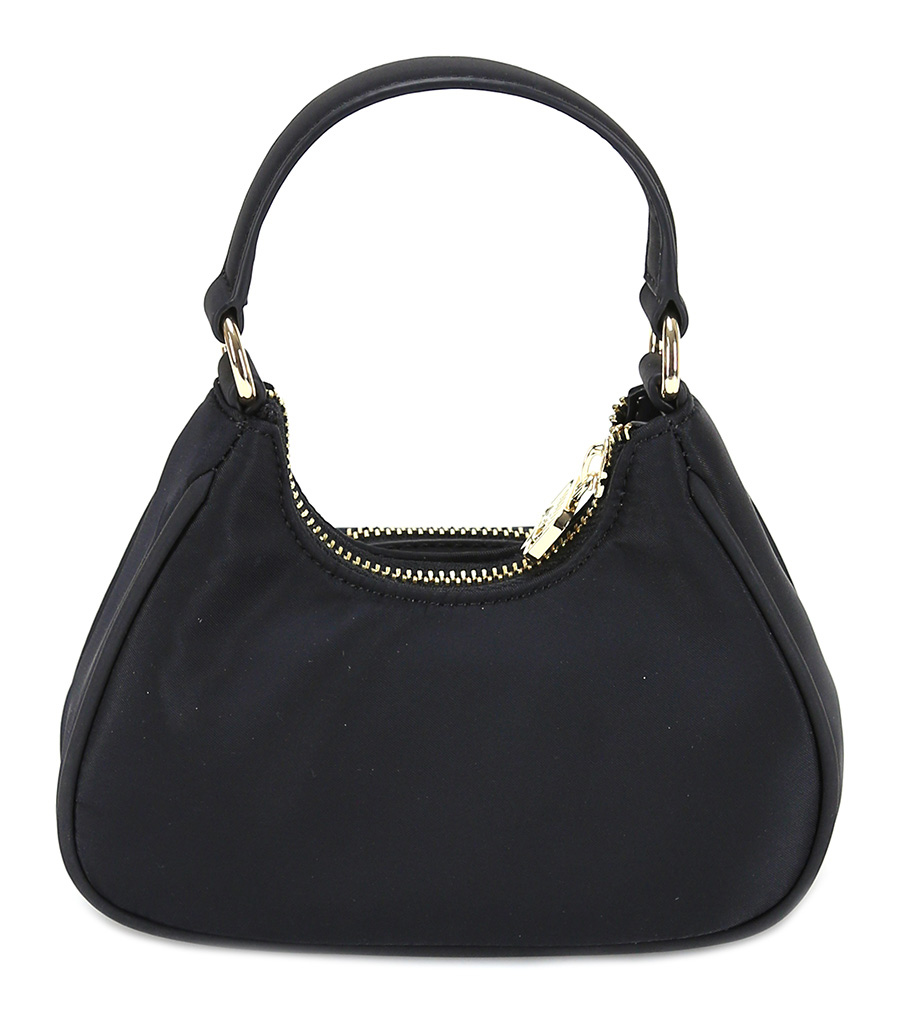 Synthetic leather bag with zip closure. Measures 21 x 22cm.