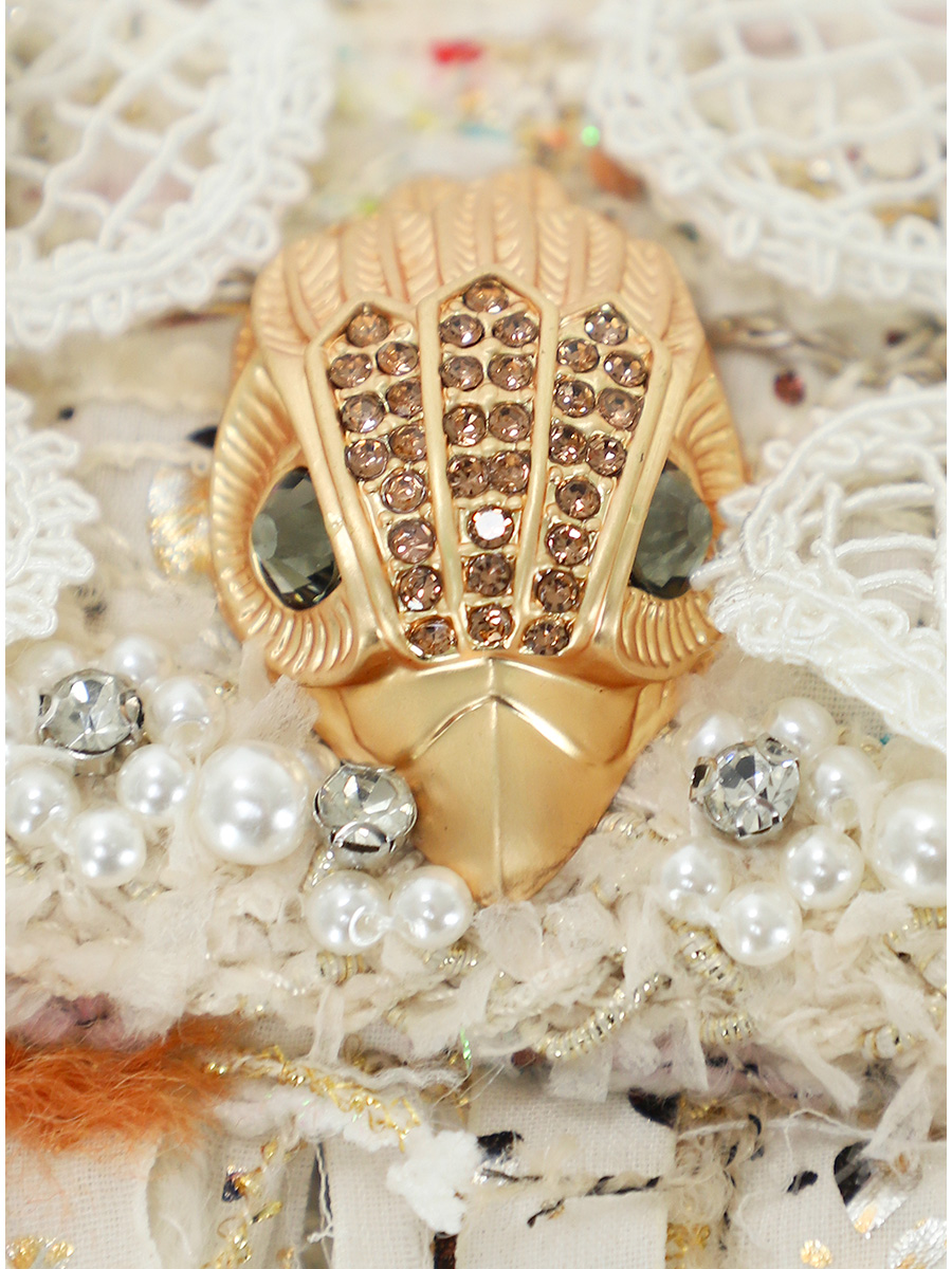 : Logo, Beads, Rhinestones, Gold details, Pattern