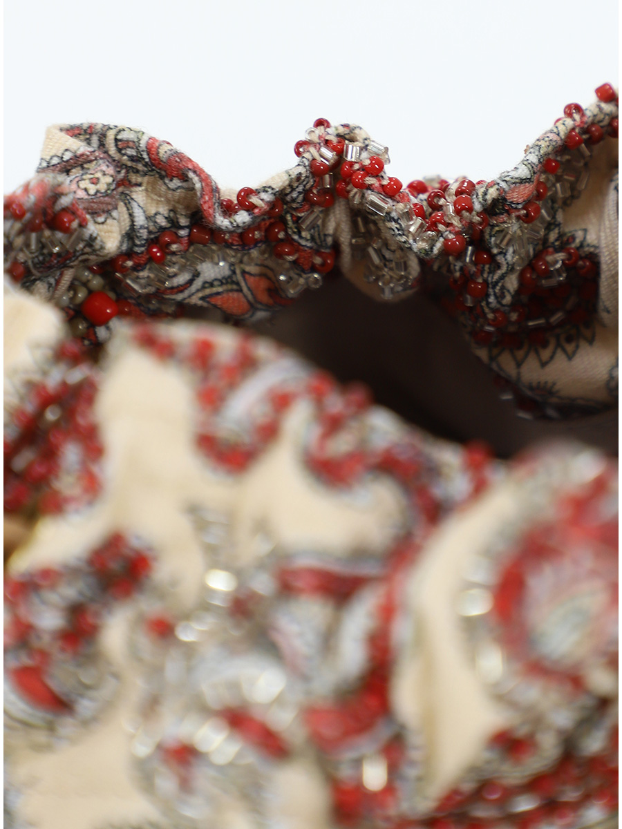 : Logo, Beads, Rhinestones, Gold details, Pattern