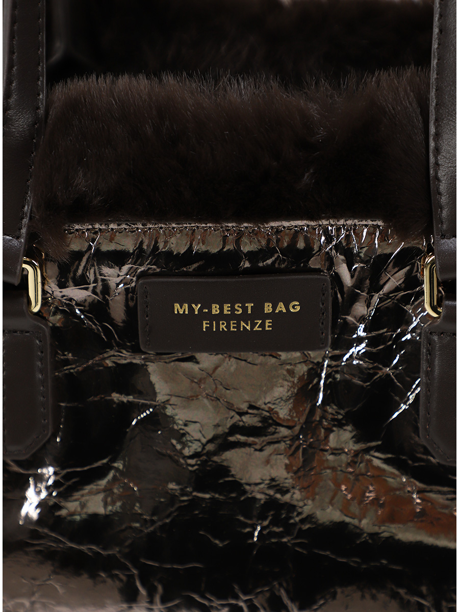: Logo, Bottom with studs, Gold details, Fake-fur