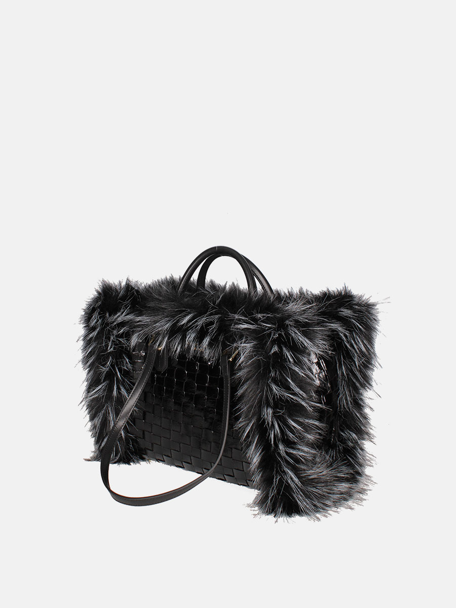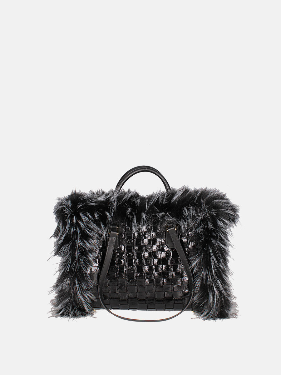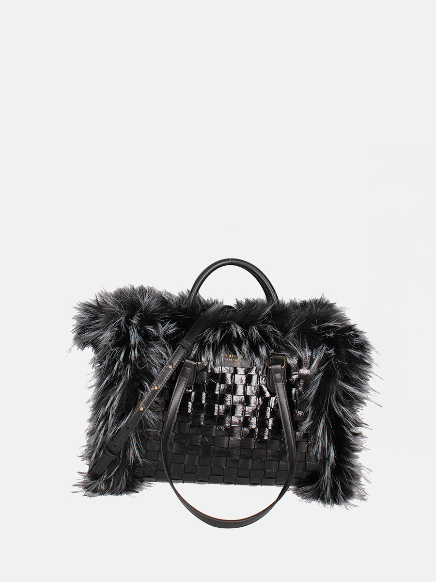 : Logo, Bottom with studs, Gold details, Fake-fur