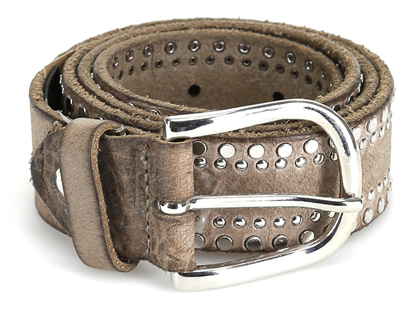Cintura in pelle con borchie piatte e fibbia metallica. Altezza 35 mm.