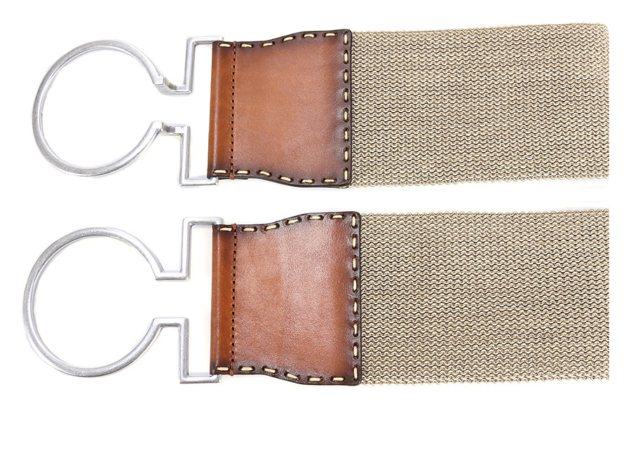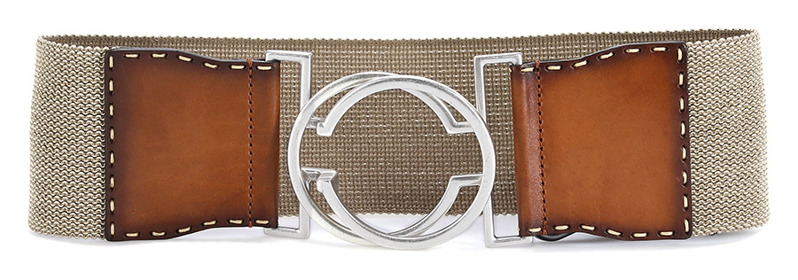Belt in fabric and leather. Interlocking closure. Height 9cm.