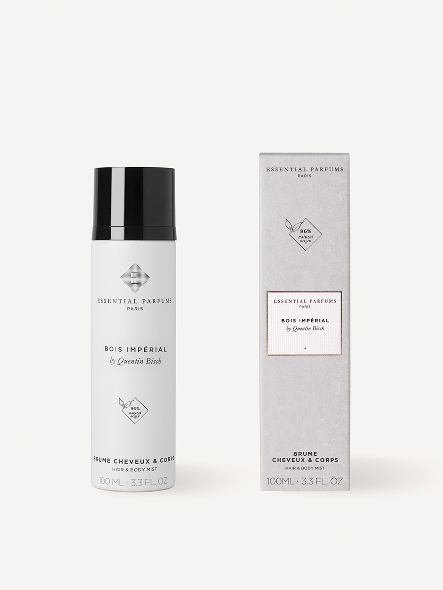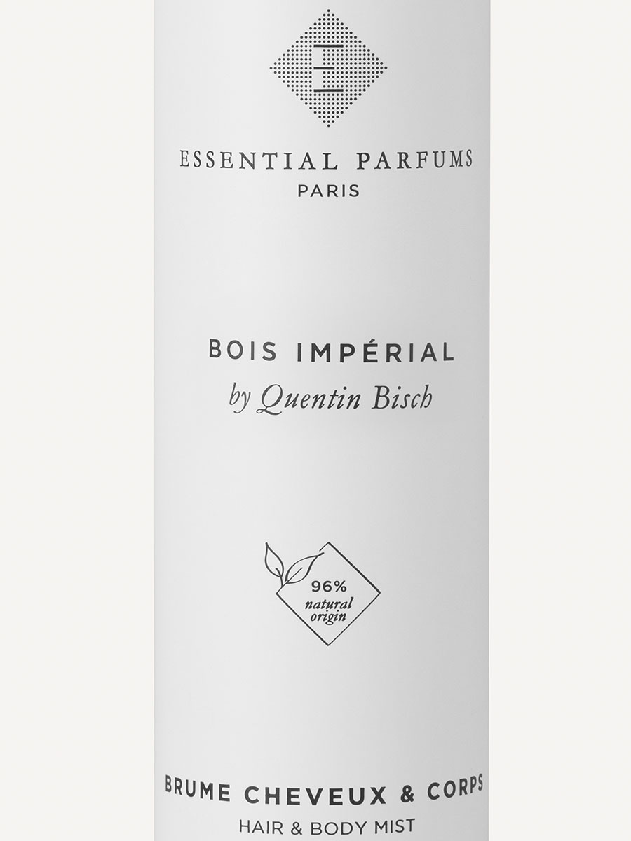 BOIS IMPÉRIAL by Quentin Bisch A nourishing and refreshing alcohol-free 2-in-1 mist that cares for both skin and hair while delicately scenting them. On the body, it softens and nourishes without leaving a greasy film. On the hair, it maintains suppleness and delivers a silky finish without weighing it down. A perfect balance of performance, comfort, and pleasure. Delicately scented with Bois Impérial by Quentin Bisch and formulated without alcohol, the hair & body mist is ideal for subtle summer fragrance use.