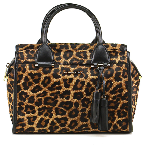 Borsa in cavallino stampato con chiusura a zip e nappina frontale. Tracolla inclusa, decorazioni gold, misure 29 x 23 cm. Tasca su retro.