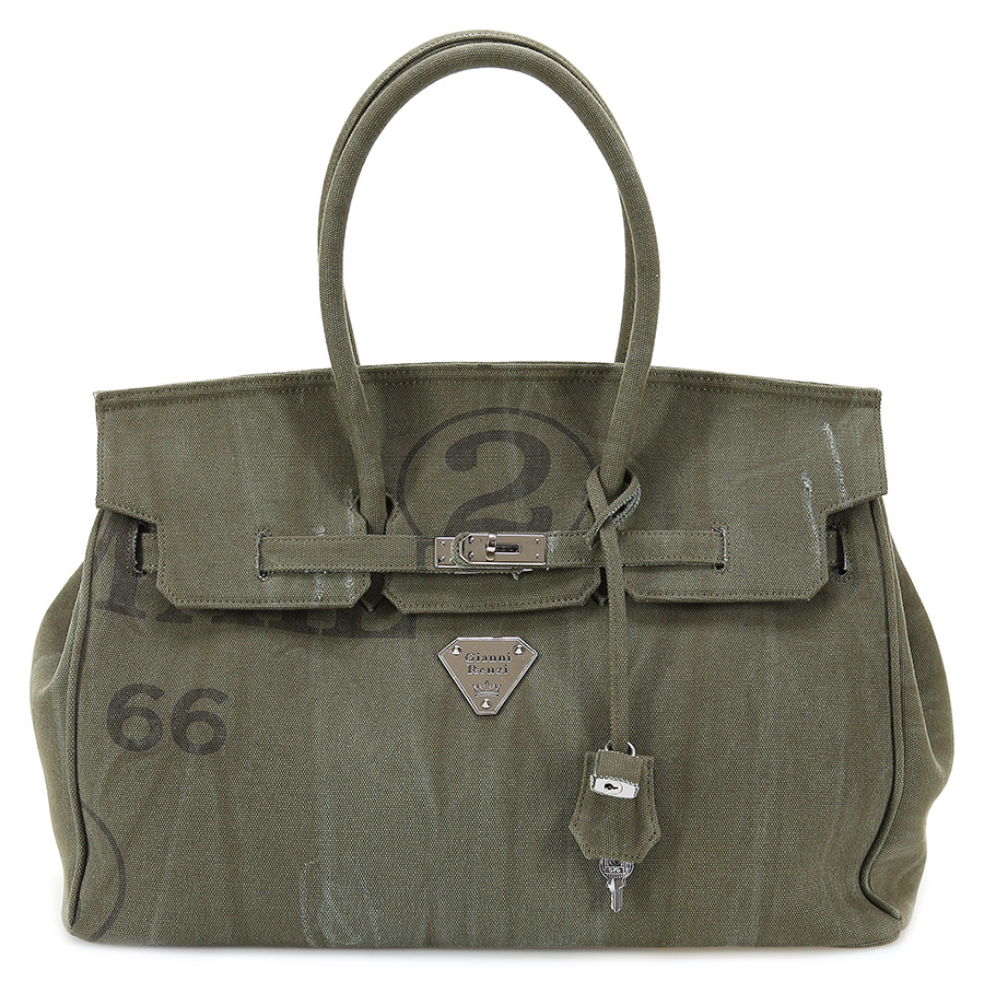 Borsa in tessuto effetto vintage, chiusura ad incastro e charms inclusi. Logo frontale. Misure 31 x 44 cm. Dettagli silver.