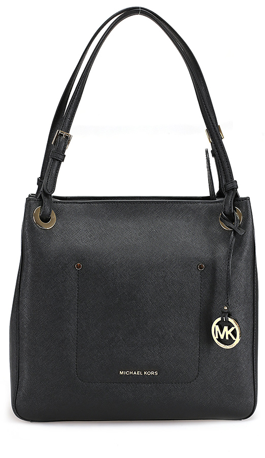 Borsa in pelle saffiano con chiusura a zip e tasca sul retro. Misure 30x28 cm.