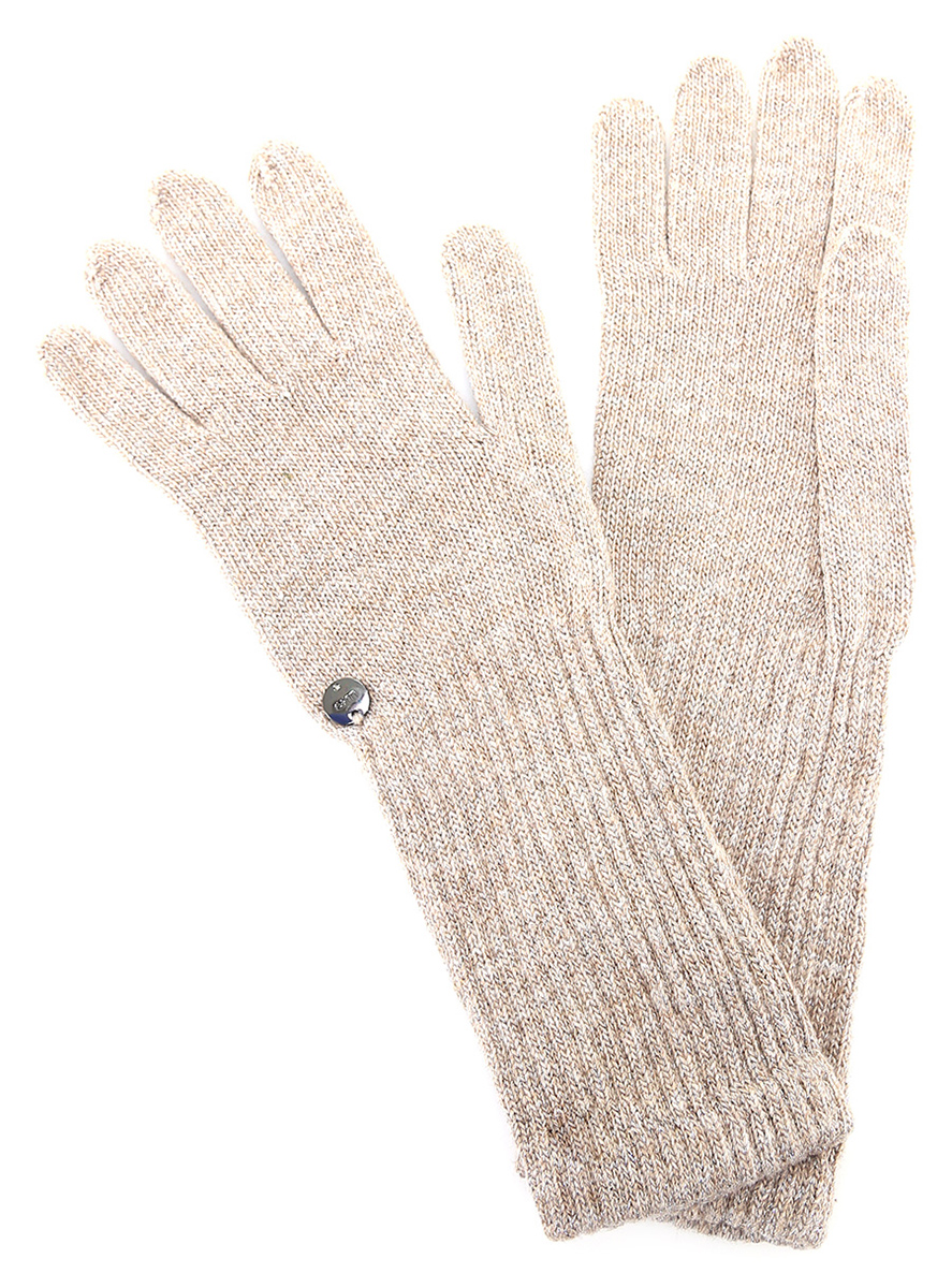 Guanti in tessuto lavorato con filati silver e piccola medaglietta con logo frontale.