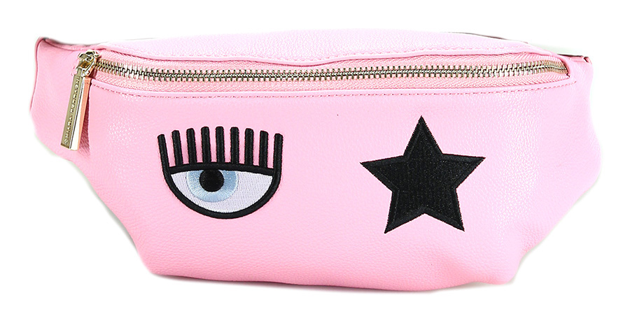 Marsupio in pelle sintetica con chiusura zip. Misure 34 x 13 cm. Dettagli gold.