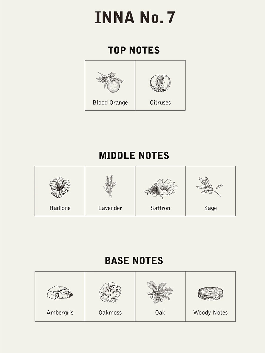 A bold burst of citrus greets you like golden sunlight on skin—bright, energizing, and impossible to ignore. INNA 7 dances with vibrant zest, evolving into a heart of aromatic spices that tingle the senses. As it settles, woody and mossy notes ground the perfume, creating a trail that is both fresh and deeply sensual. It’s a scent that radiates confidence, sweet and alluring, in a vibrant atmosphere.