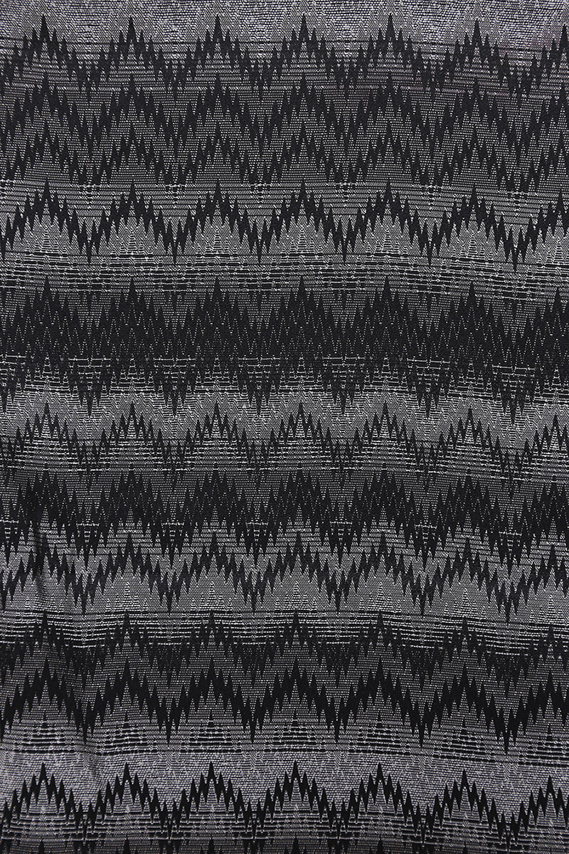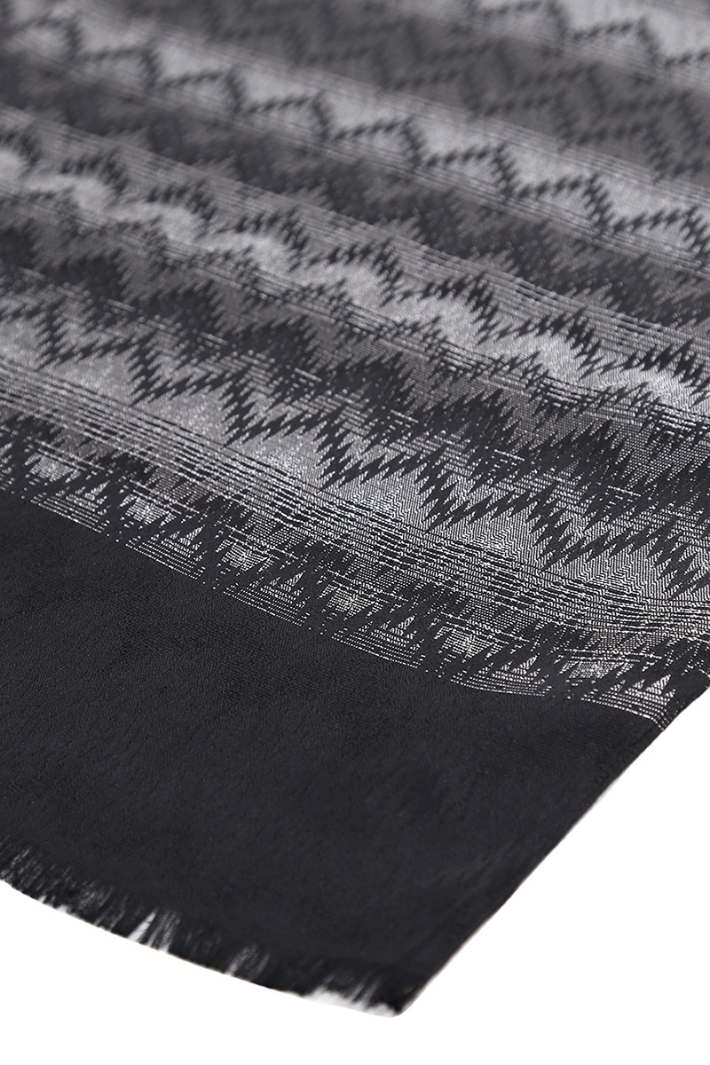 Scarf in 100% silk. Fringed bottom. Geometric pattern. Measures 44 x 207cm.