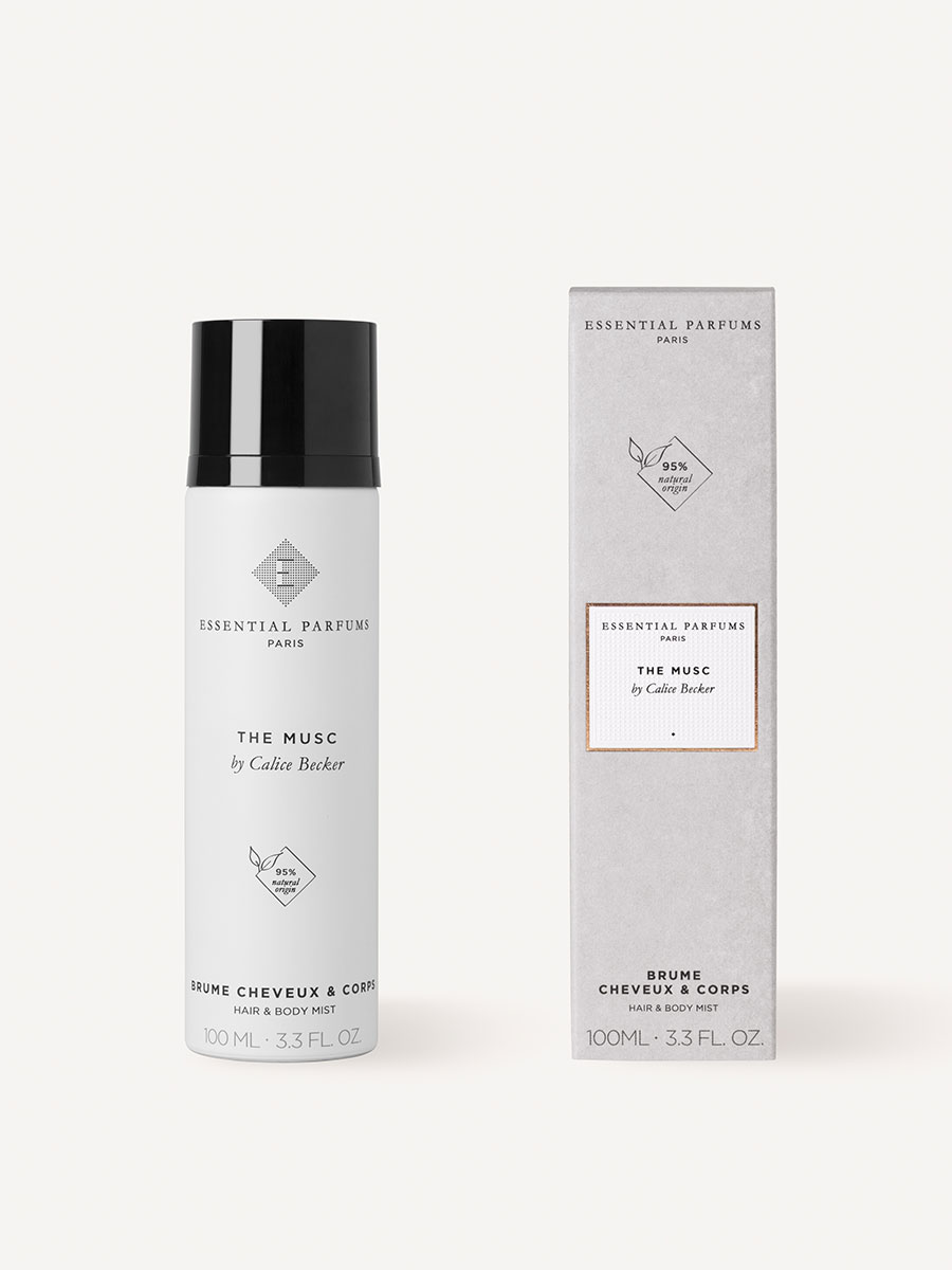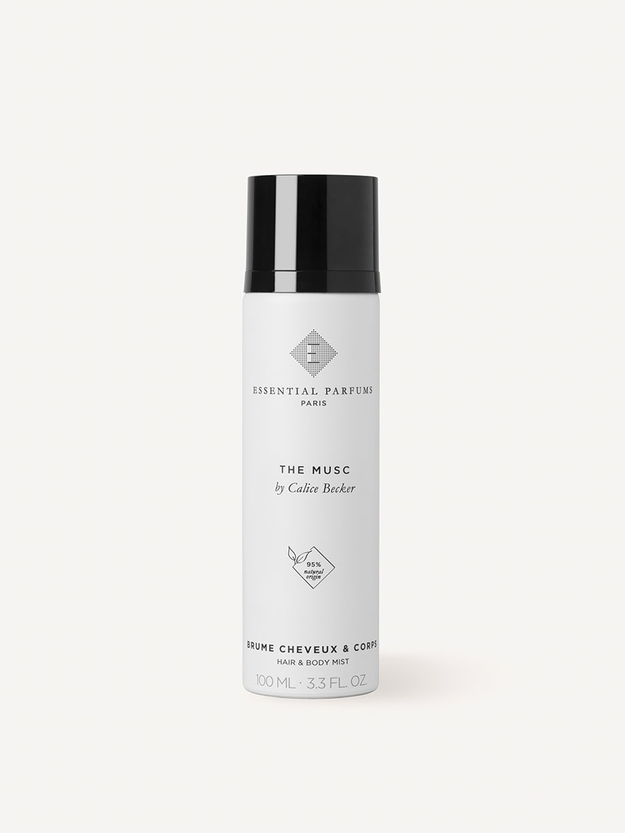 THE MUSC by Calice Becker A nourishing and refreshing alcohol-free 2-in-1 mist that cares for both skin and hair while delicately scenting them. On the body, it softens and nourishes without leaving a greasy film. On the hair, it maintains suppleness and delivers a silky finish without weighing it down. A perfect balance of performance, comfort, and pleasure. Delicately scented with The Musc by Calice Becker and formulated without alcohol, the hair & body mist is ideal for subtle summer fragrance use.