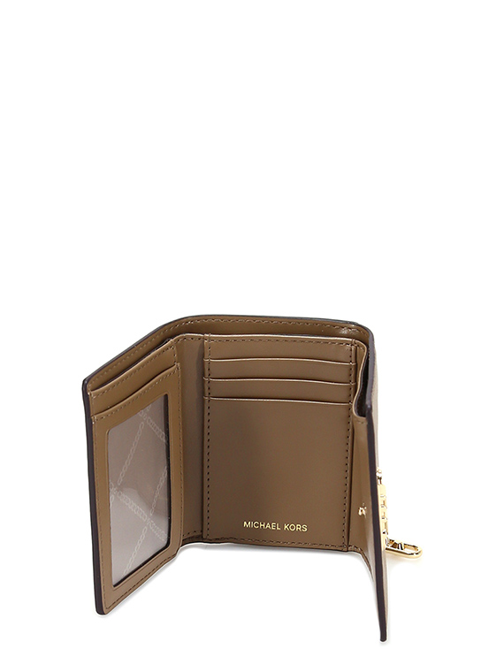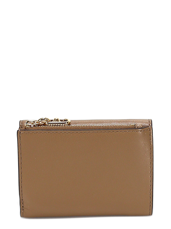 Leather wallet with button closure. Measures 12 x 9cm.