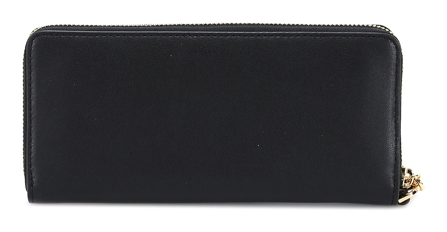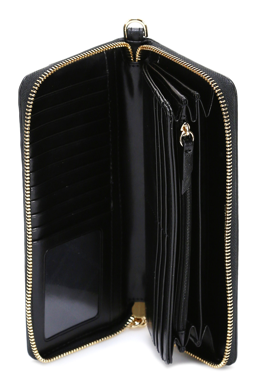 Leather wallet with zip closure. Removable cuff included. Compartments for cards, banknotes and coins inside. Measures 22 x 11cm.