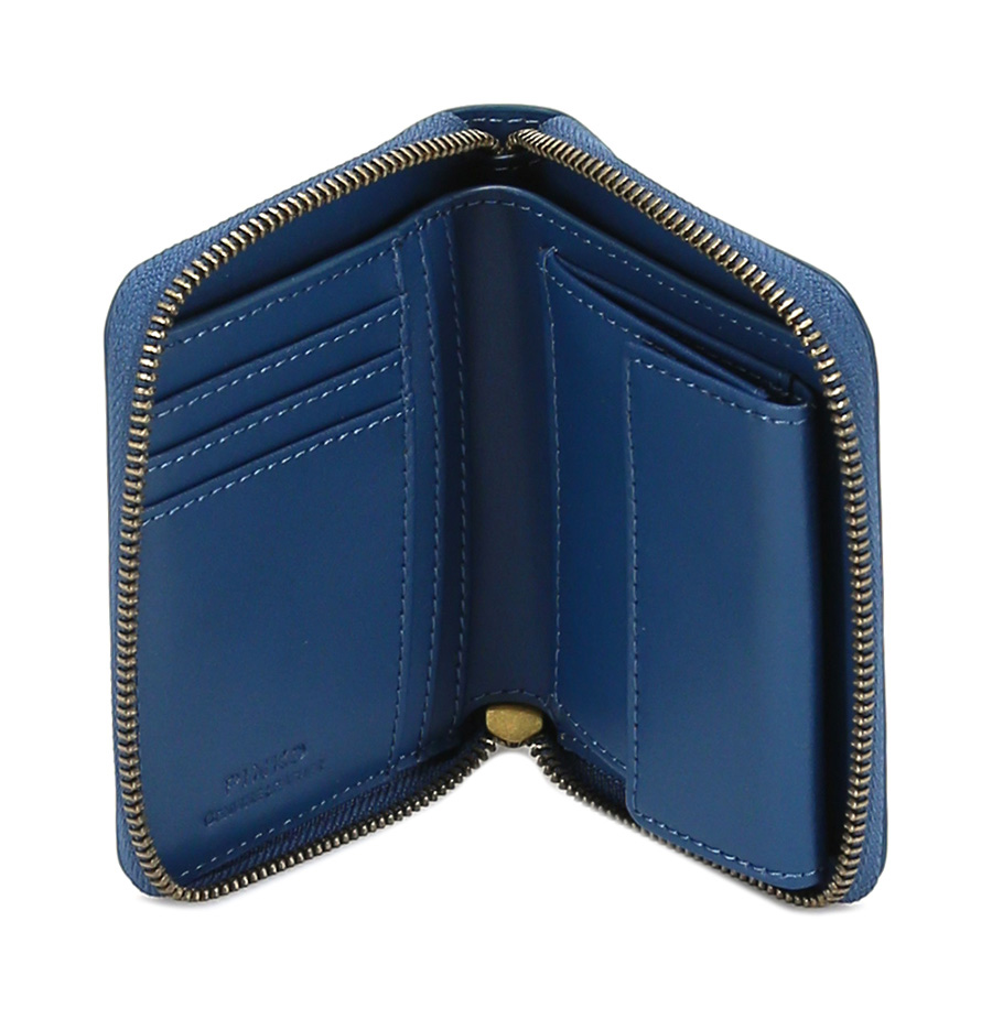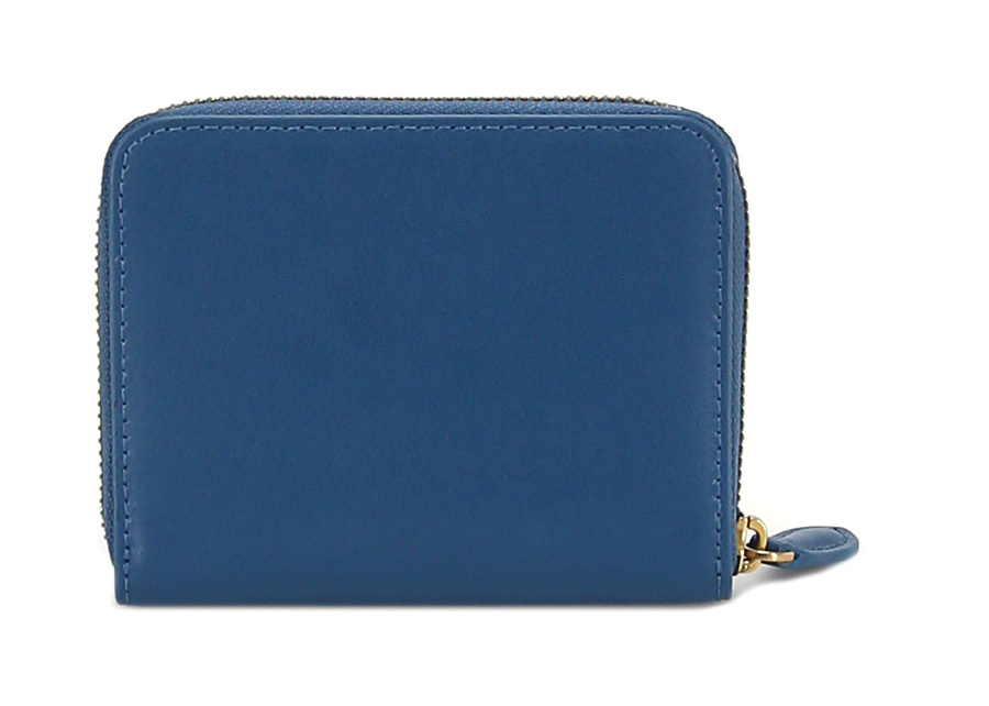 Leather wallet with zip closure. Internal card holder, banknote holder and coin holder. Measures 13 x 11cm.