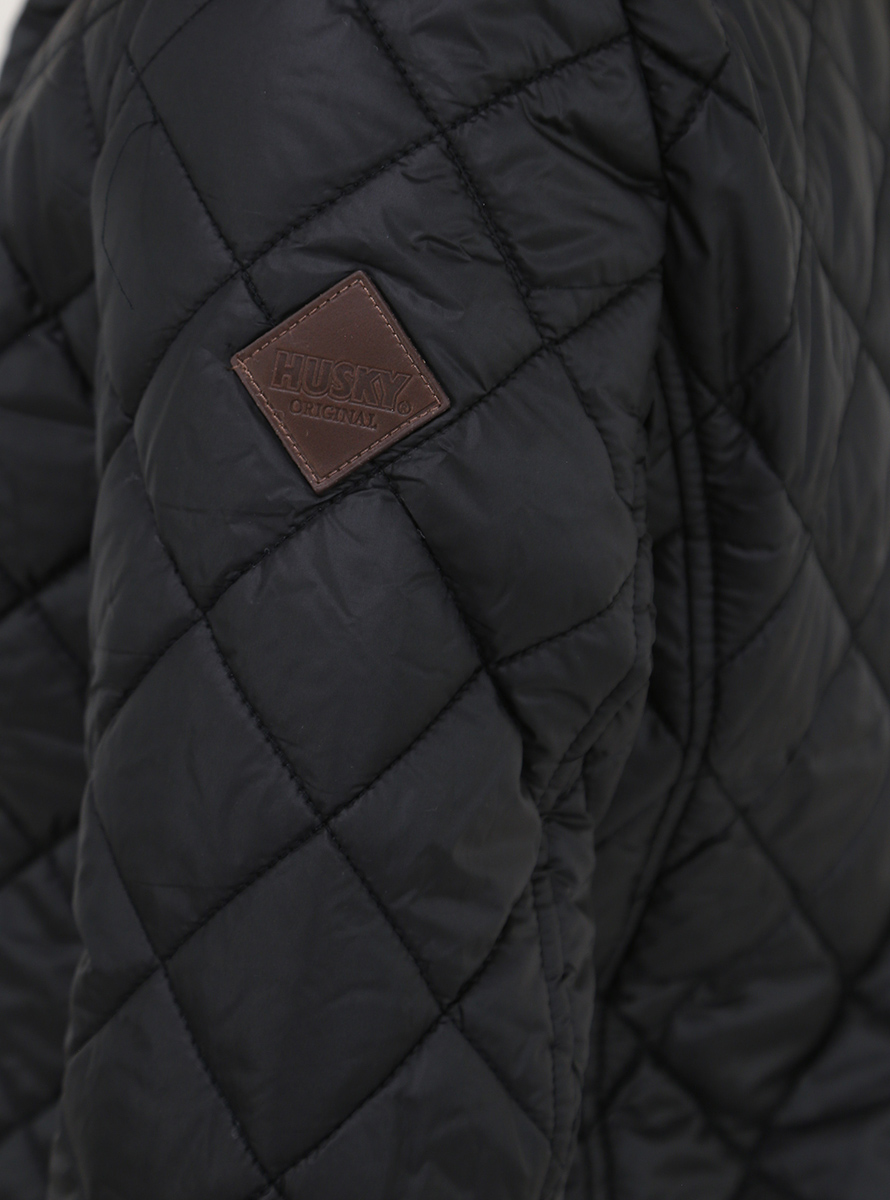 Husky down jacket in padded nylon. Long sleeves and classic neck. Patch pockets and back vents. Logoed snap closures and contrasting velvet edges. The model is 1.68 tall and wears size 40.
