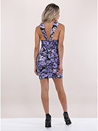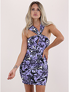 Aniye BY stretch lined dress with front crossed shoulder straps. High waist with elastic front and back. Front rhinestone buckle and zip closure. Two-tone pattern. The model is 1.68 tall and wears size 40.