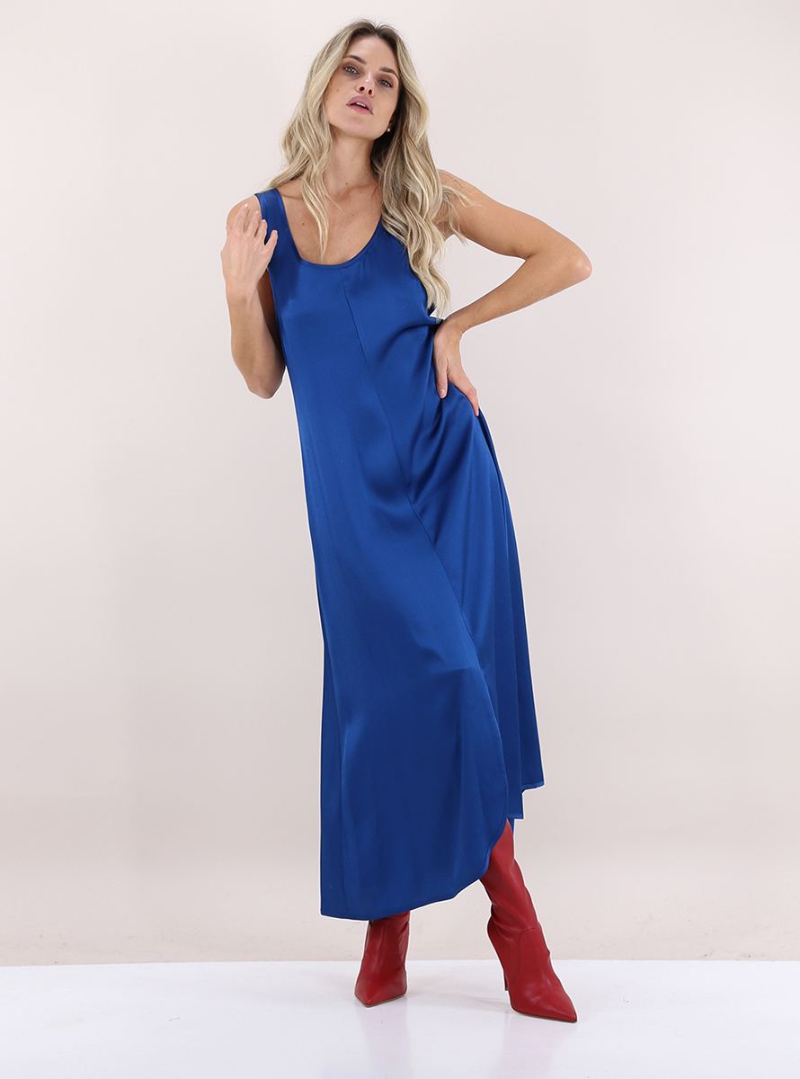 Beatrice B sleeveless dress in silk blend crepe. Front and back round neck with zip closure. Asymmetrical bottom. Crossed V-neck kimono shrug. Long sleeves with gathered cuffs. The model is 1.68 tall and wears size 42.