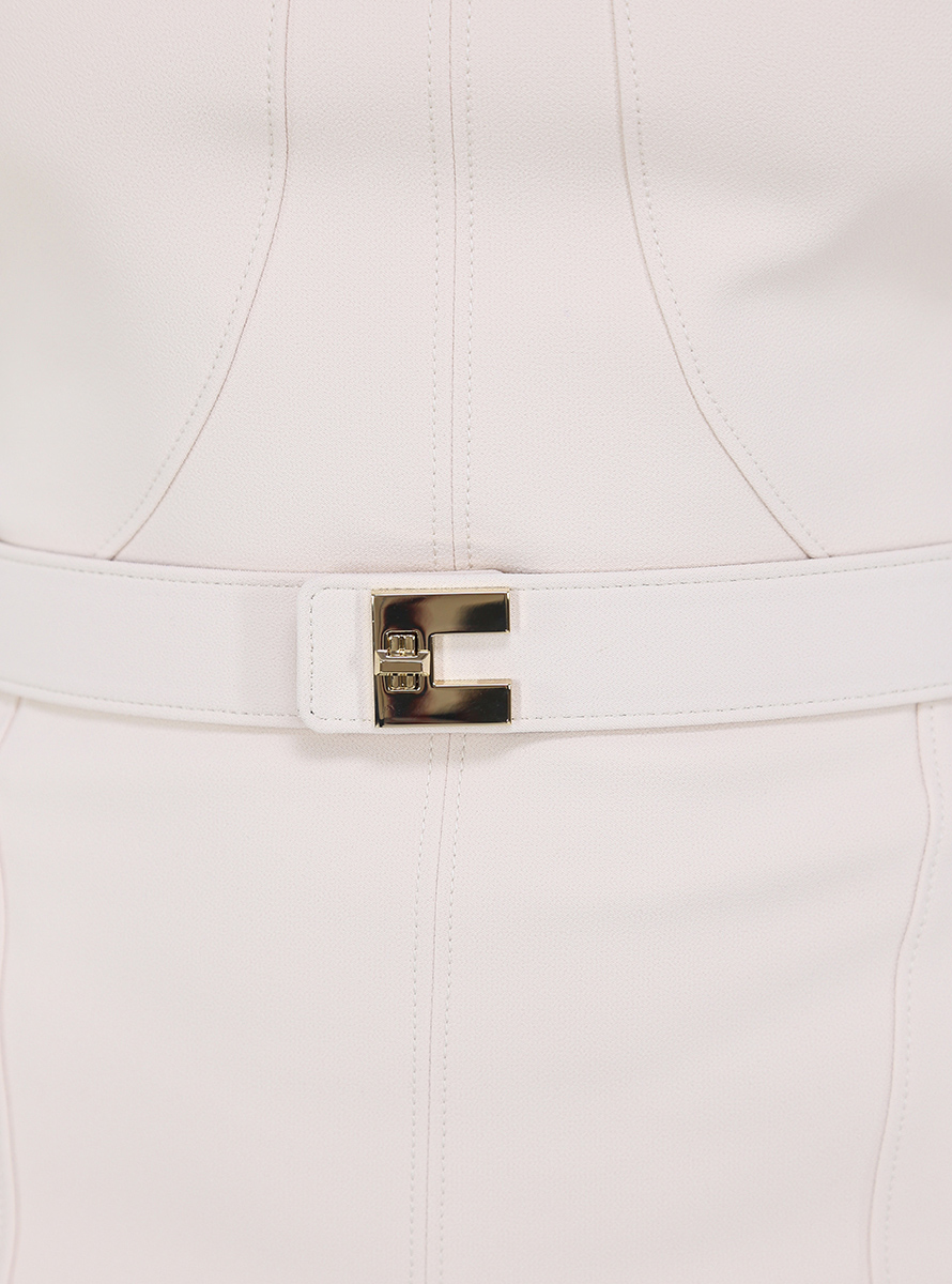Elisabetta Franchi sheath dress in lined stretch cady. Front and back square neckline and slit on the bottom. Gold logoed zip closure. Fabric belt with buckle included. The model is 1.68 tall and wears size 40.
