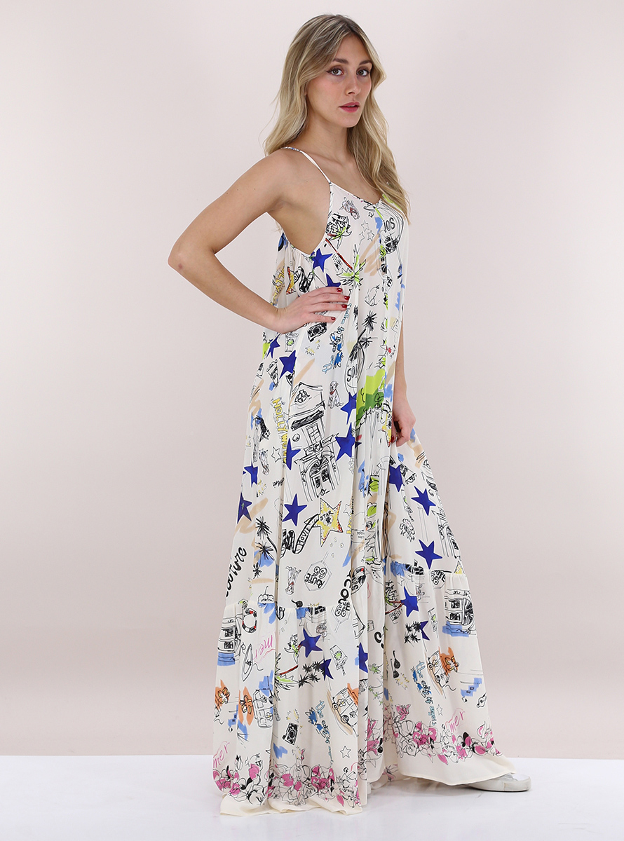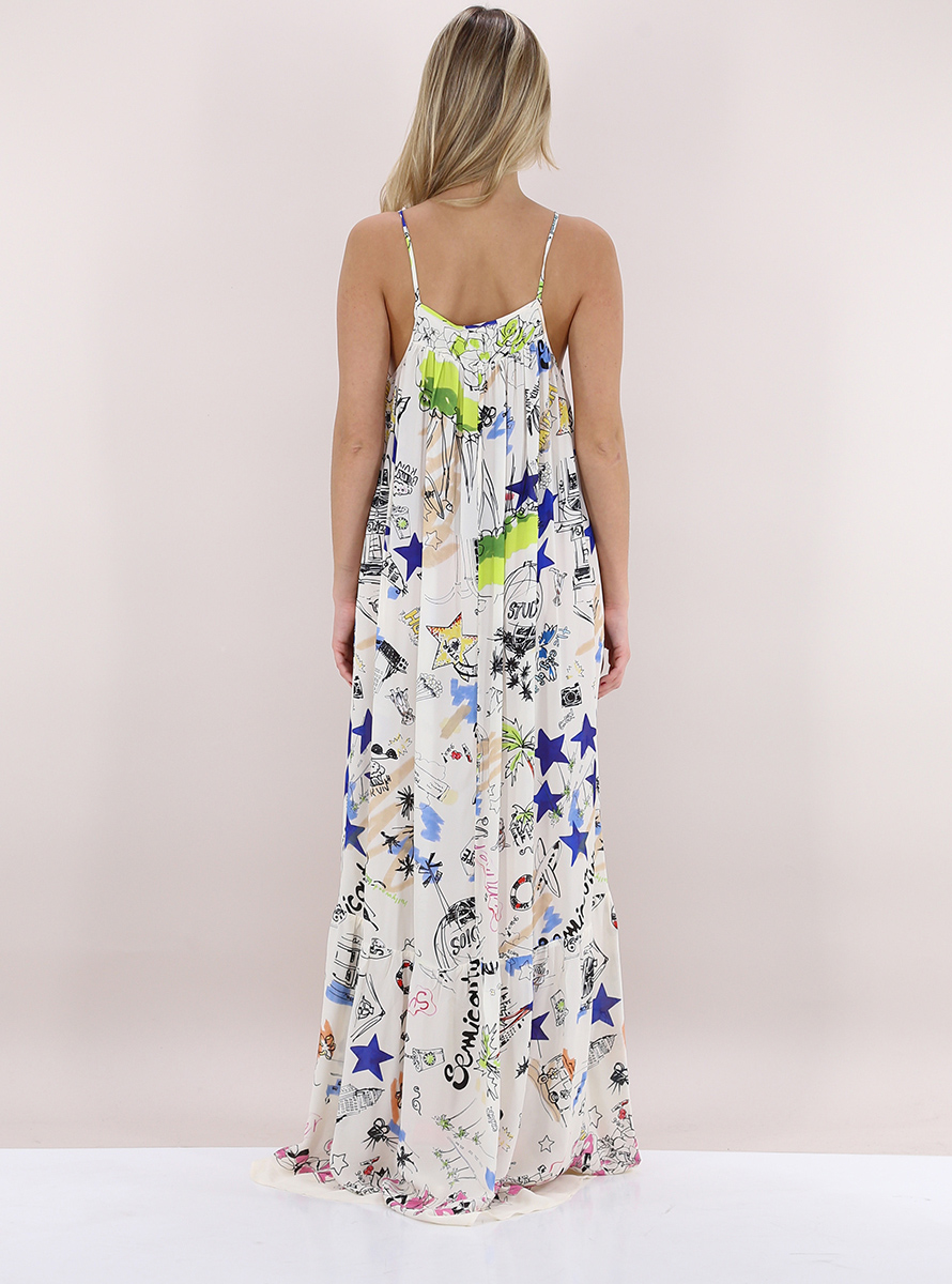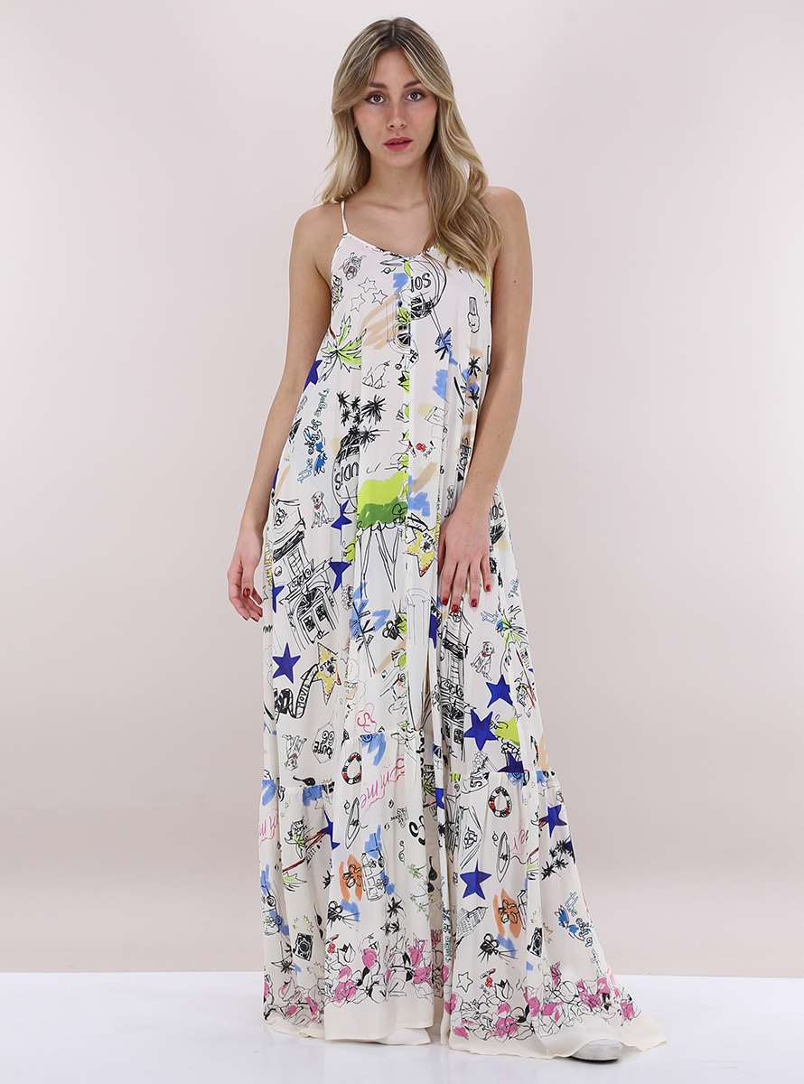 Semicouture slip dress in viscose with V-neck and side pouch pockets. Wide bottom with gathered frill. Fantasy mix. The model is 1.75 tall and wears size 38.