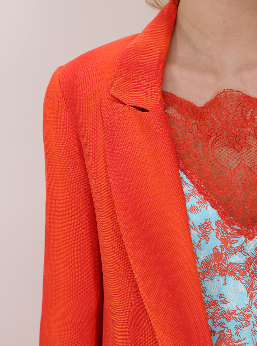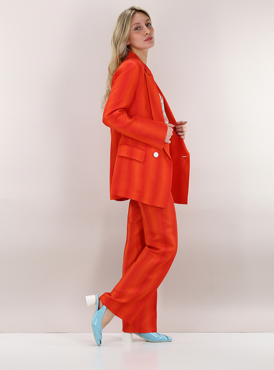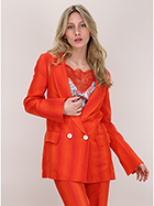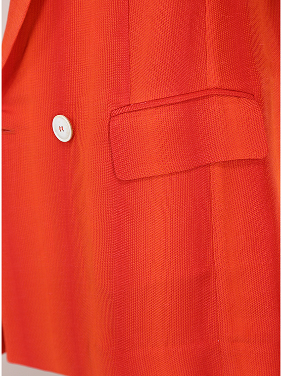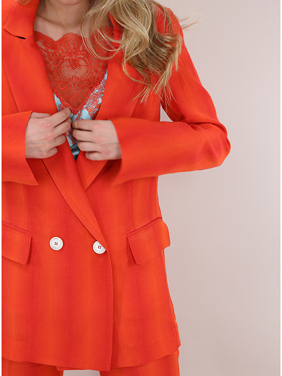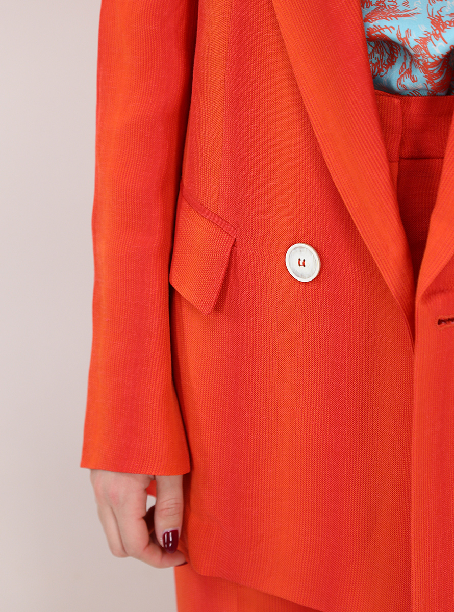 Beatrice unlined blazer in linen, viscose and cotton with long sleeves and peak collar. Flap pockets and double-breasted front closure buttons. The model is 1.70 tall and wears size 38.