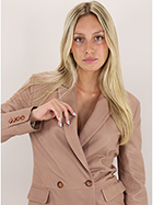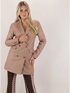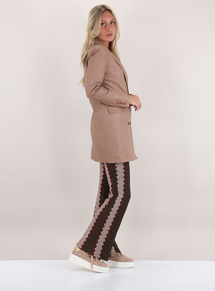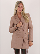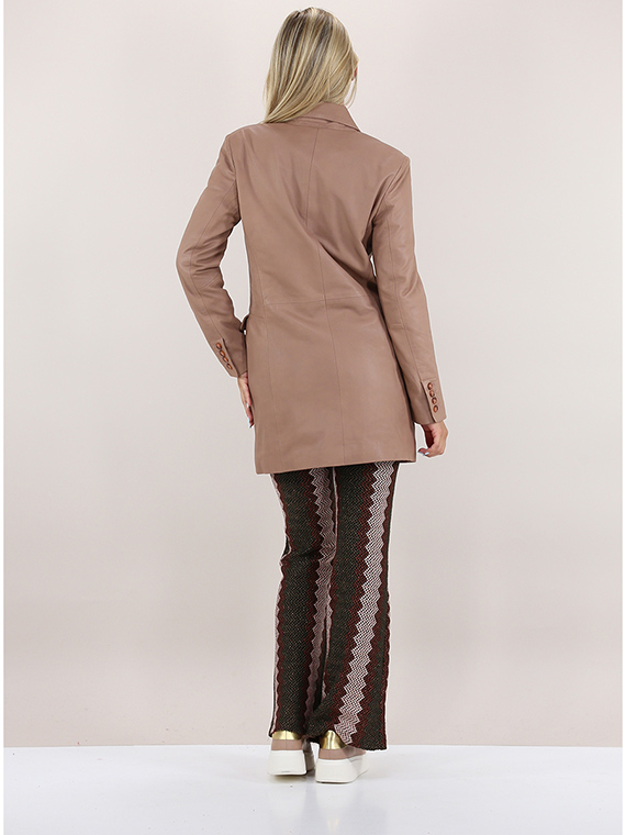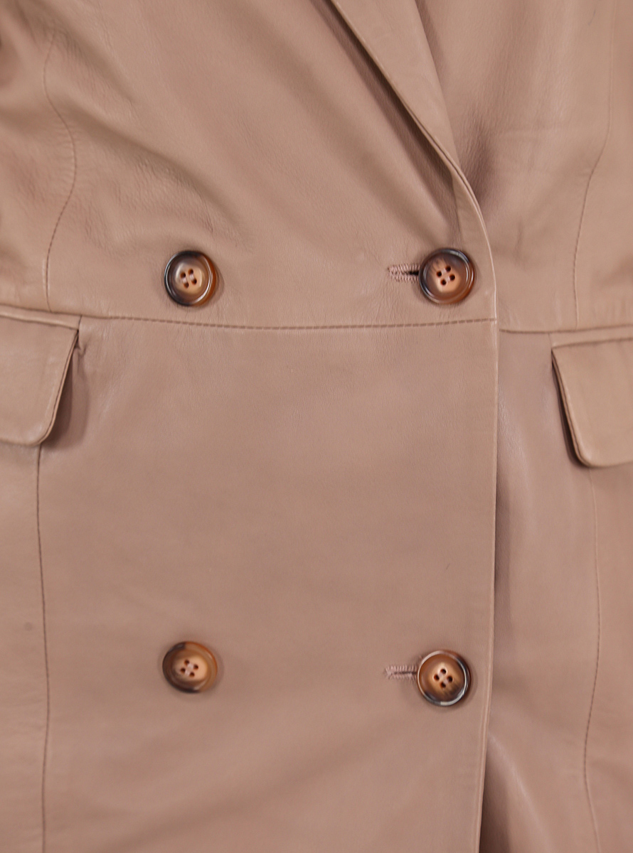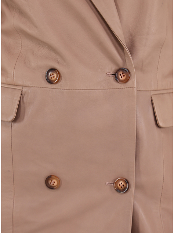 Cotton lined Bully leather jacket. Long sleeves and lapel collar. Pockets with flaps and double-breasted closure buttons. The model is 1.70 tall and wears size 40.