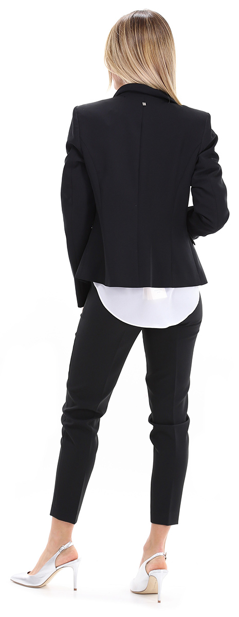 Fitted lined jacket with long sleeves and reverse collar. Pockets with flap and front button closure. The model is 1.68 tall and wears size XS.