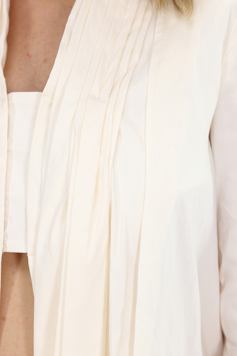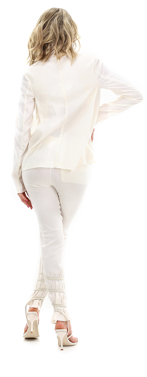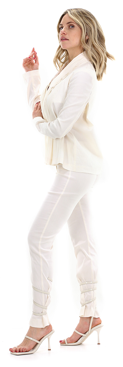 Malloni jacket in linen and stretch cotton with long sleeves and shawl collar with side pleats. Removable fabric insert with automatic closure. The model is 1.68 tall and wears size 40.