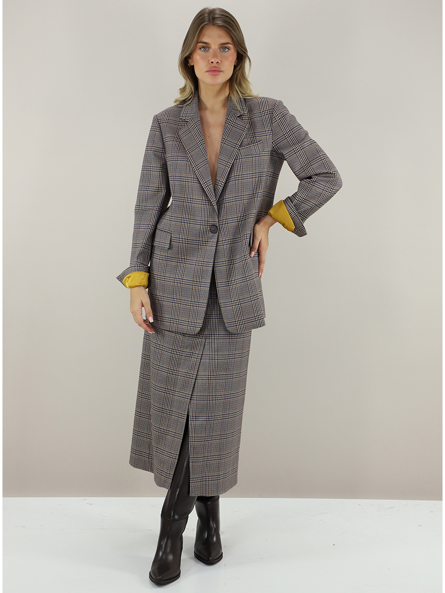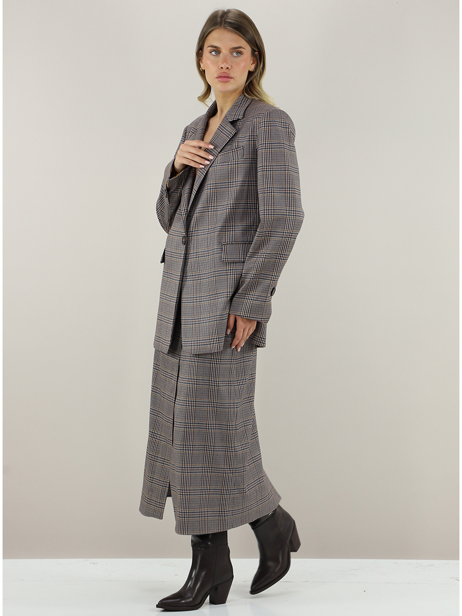 : Check pattern, Slits at the bottom, Logo, Pockets