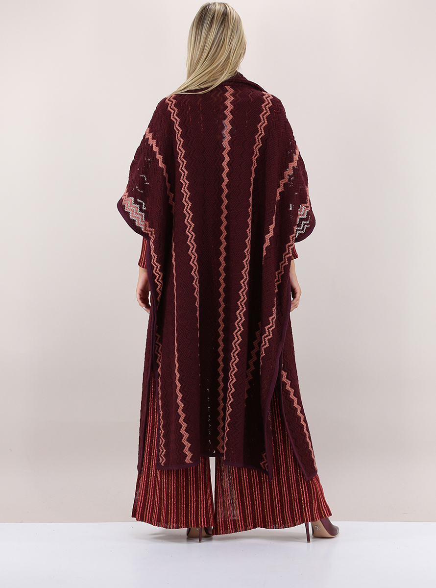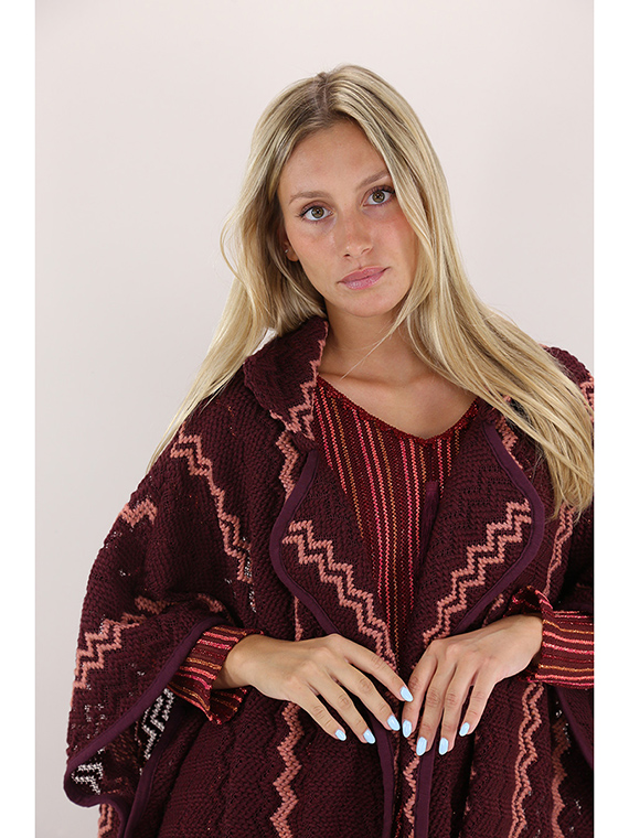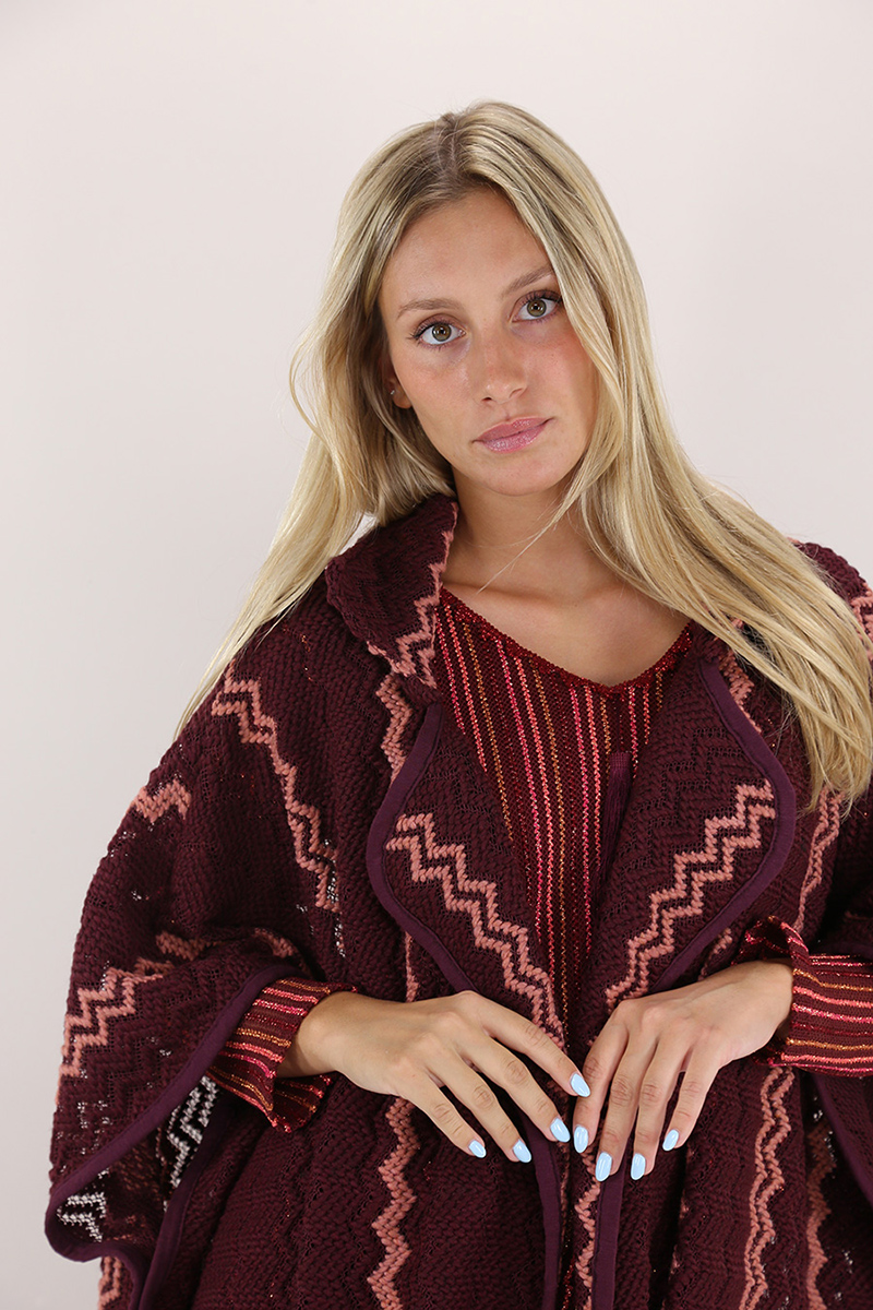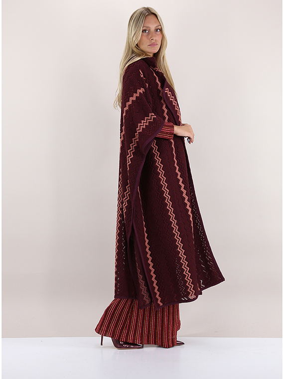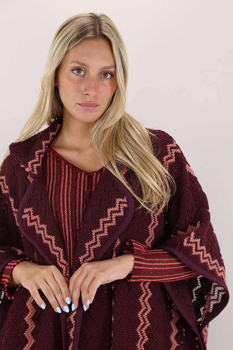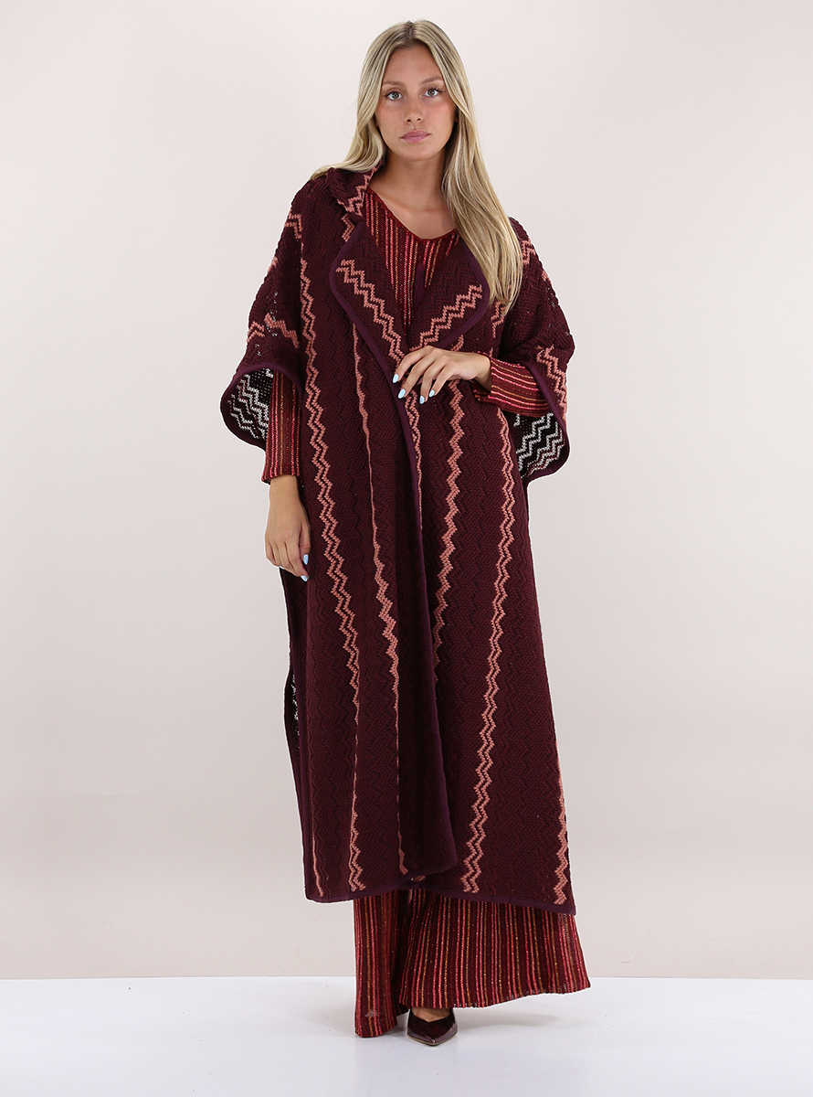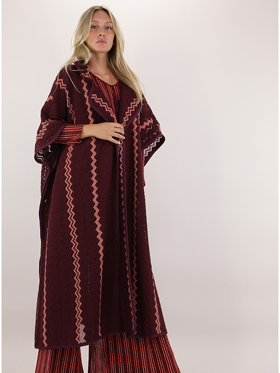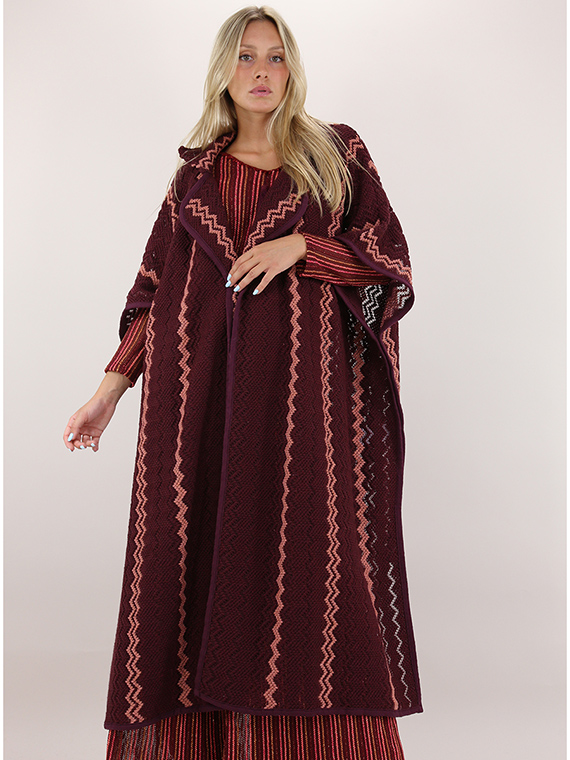 Pho Firenze kaftan jacket in wool and cotton blend. Reverse collar. Profiled edges. Zig-zag pattern. The model is 1.70 tall and wears the UNICA size.