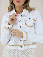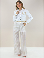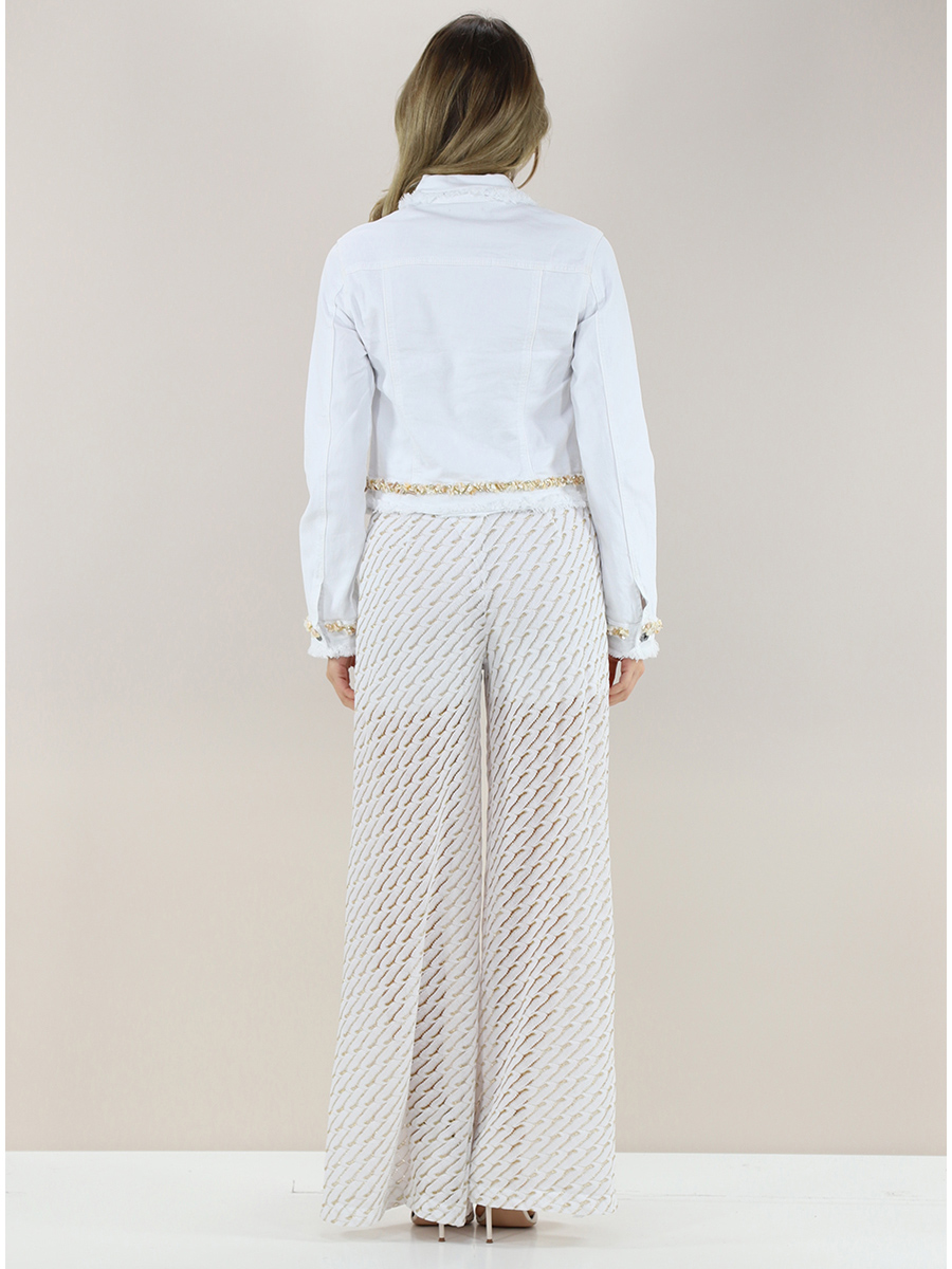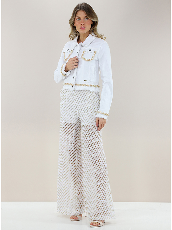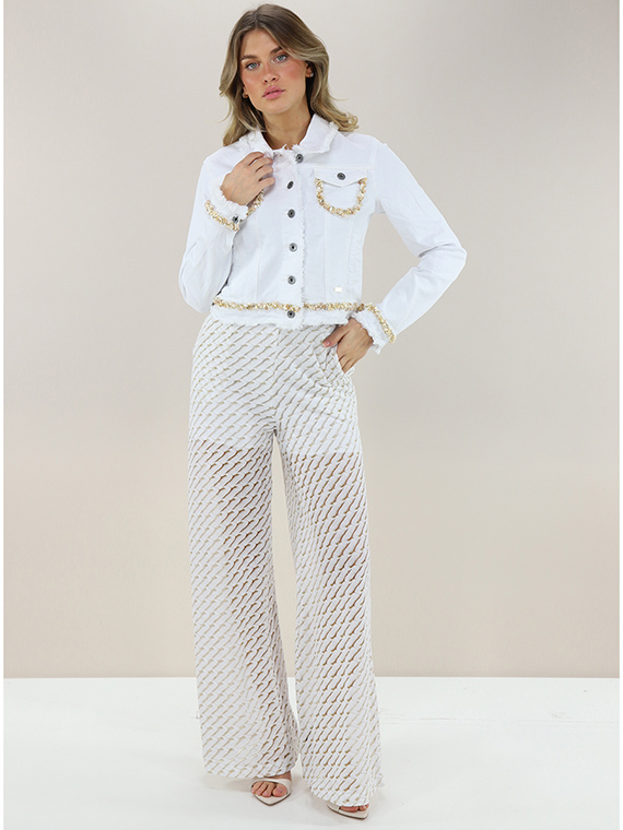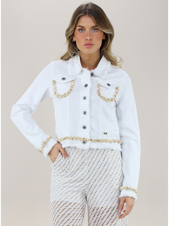 Applications: Profile with fringes, Contrasting applications, Pockets, Fringed hem